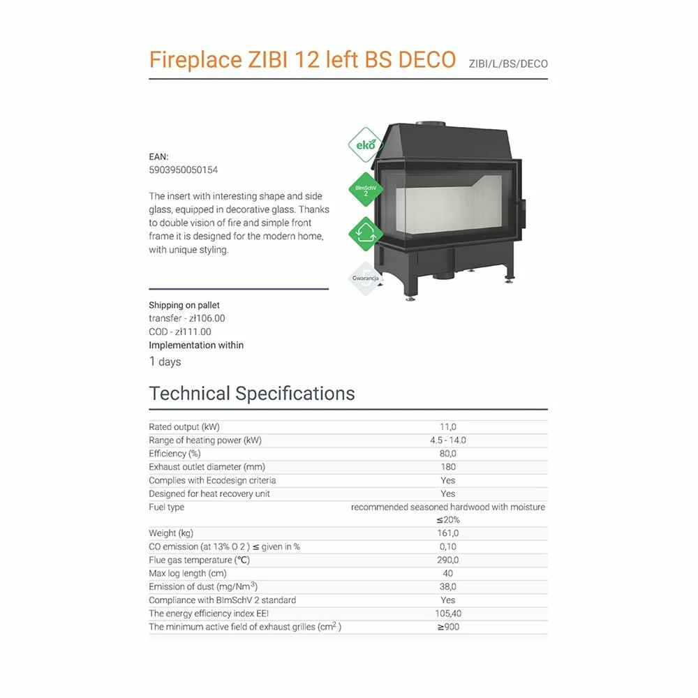 Ενεργειακό τζάκι αερόθερμο αριστερή γωνία KRATKI ZIBI/L/BS/DECO 11KW (100-150M2)