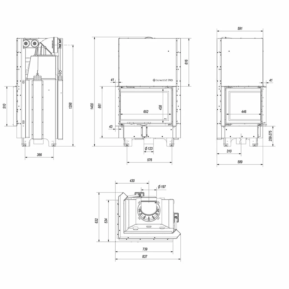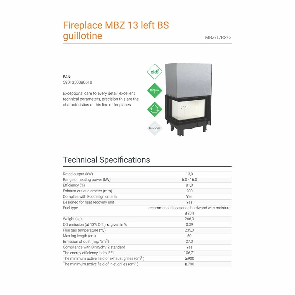 Ενεργειακό τζάκι αερόθερμο αριστερή γωνία με συρόμενη πόρτα KRATKI MBZ/L/BS/G 13KW 120-150m2