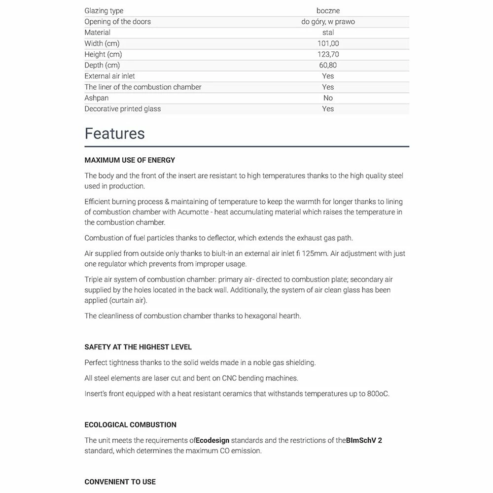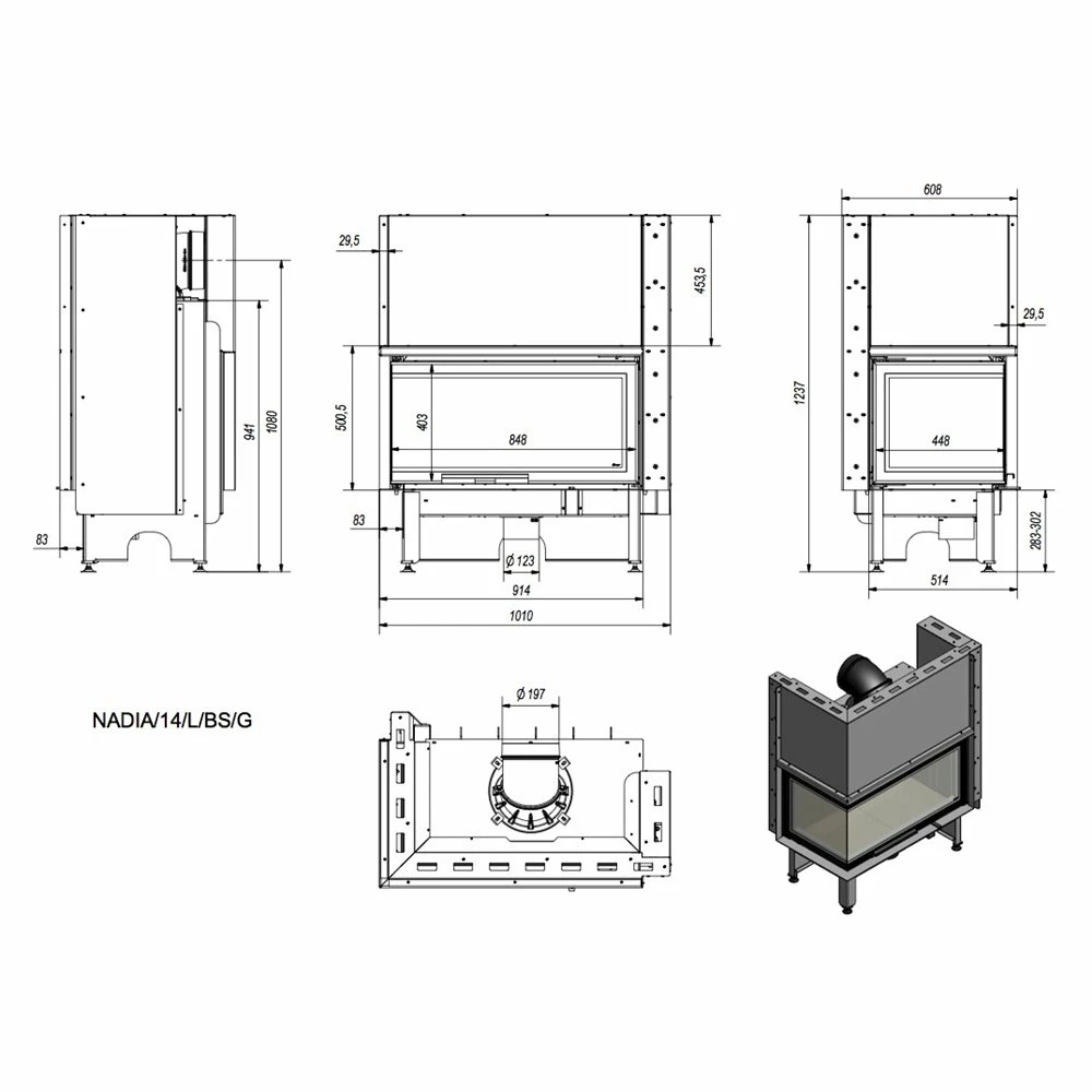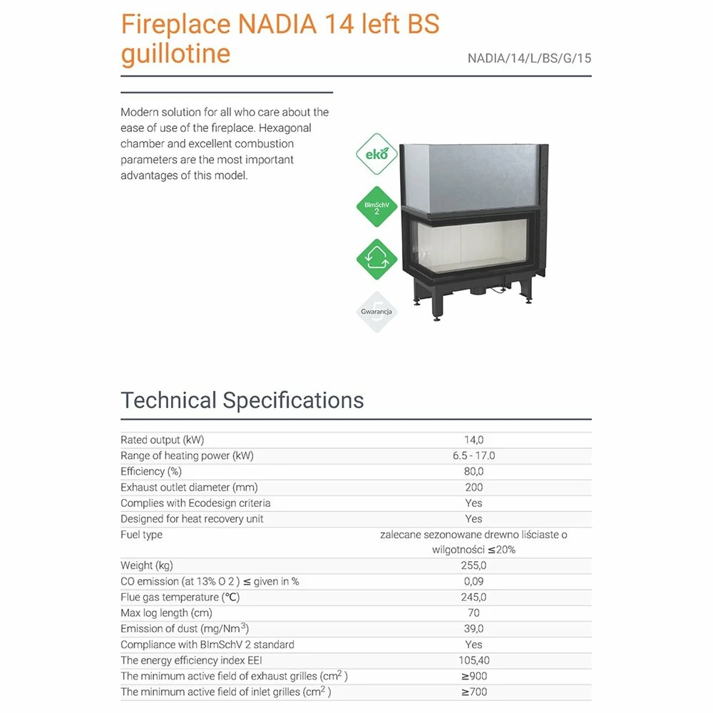 Ενεργειακό τζάκι αερόθερμο αριστερή γωνία με συρόμενη πόρτα KRATKI NADIA/14/L/BS/G 14KW / 120 – 140 M2