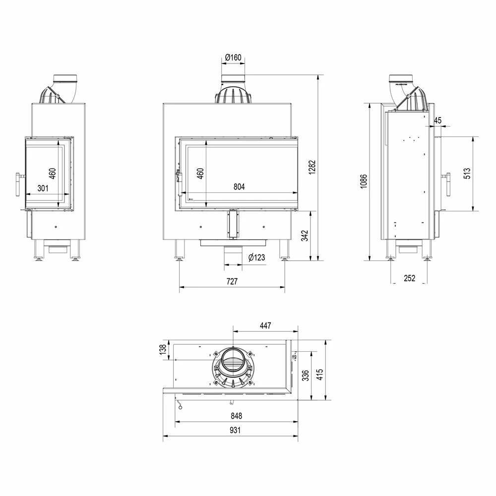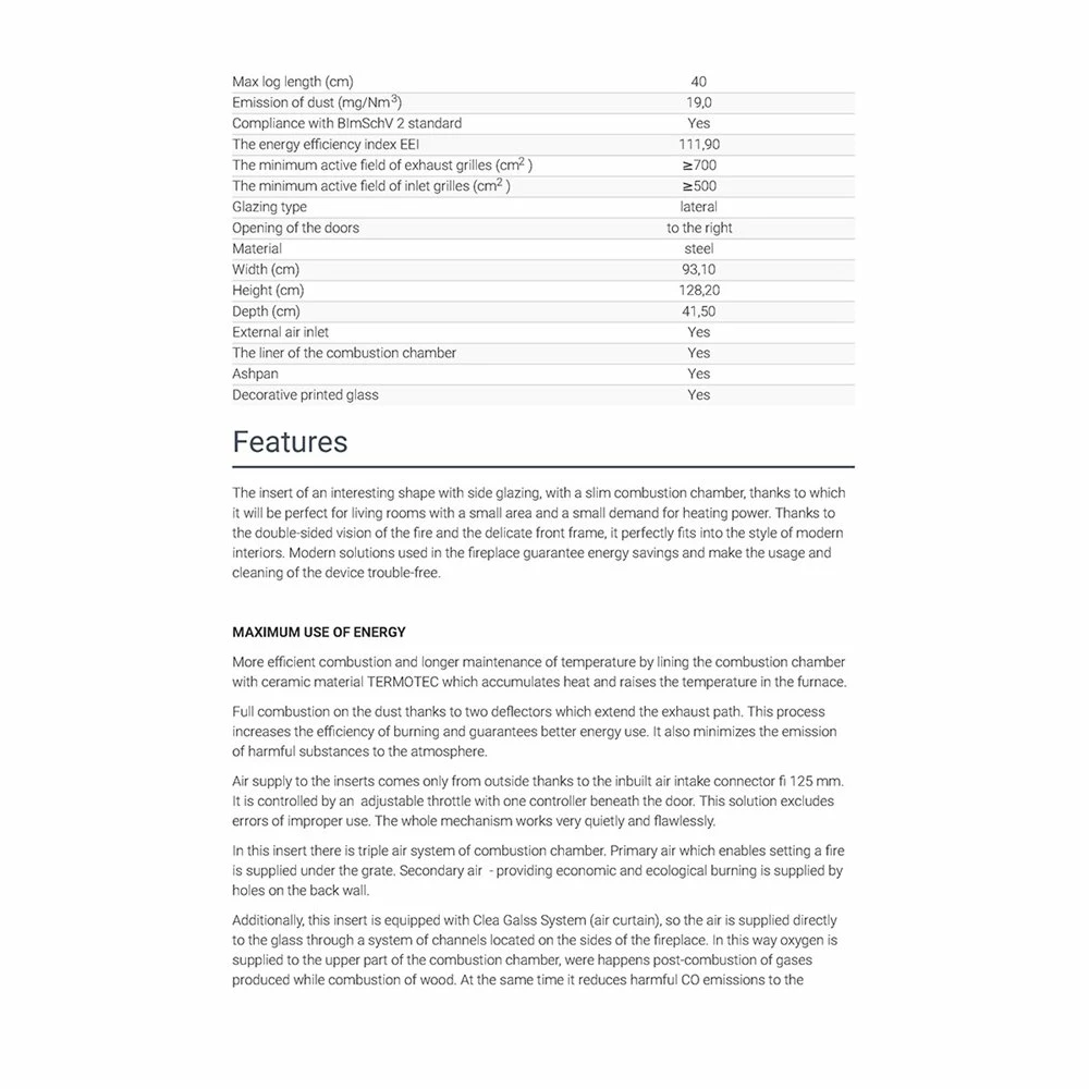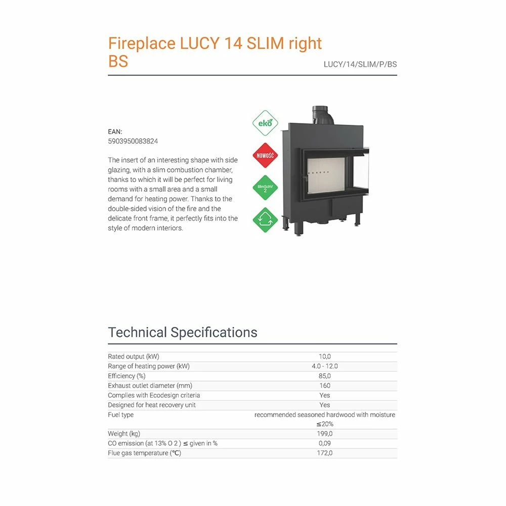 Ενεργειακό τζάκι αερόθερμο δεξιά γωνία KRATKI LUCY/14/SLIM/P/BS 10KW 80-100M2