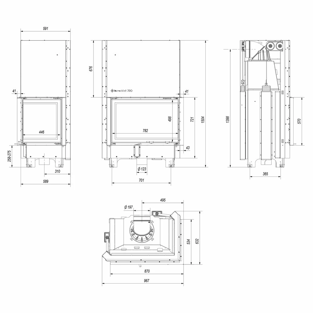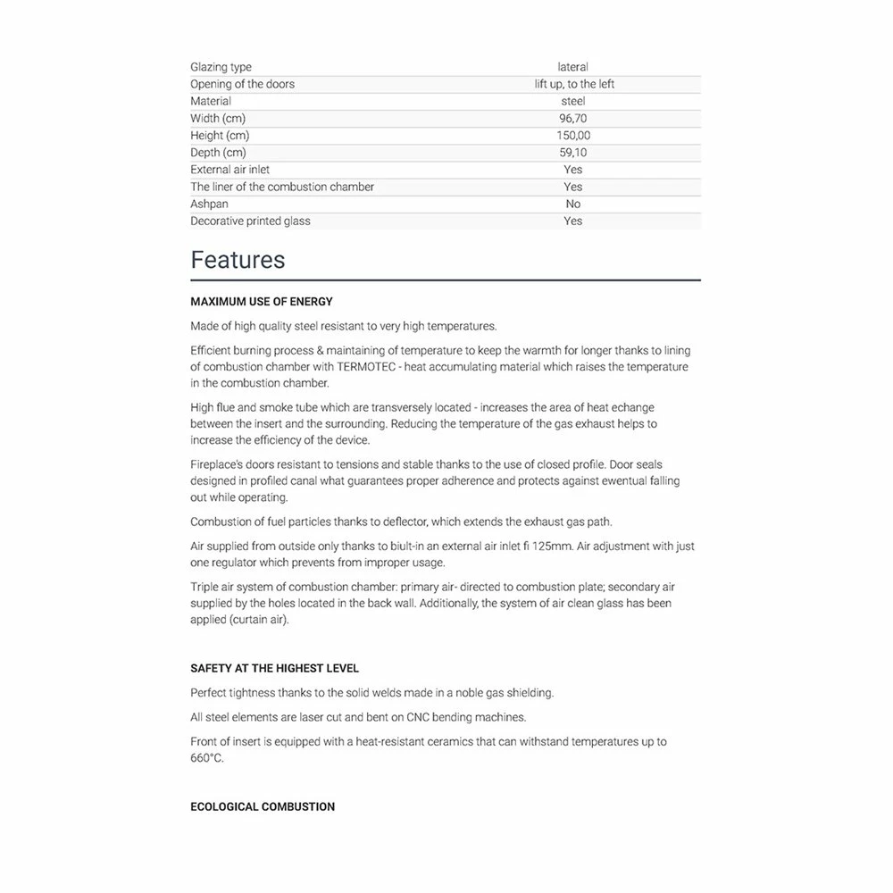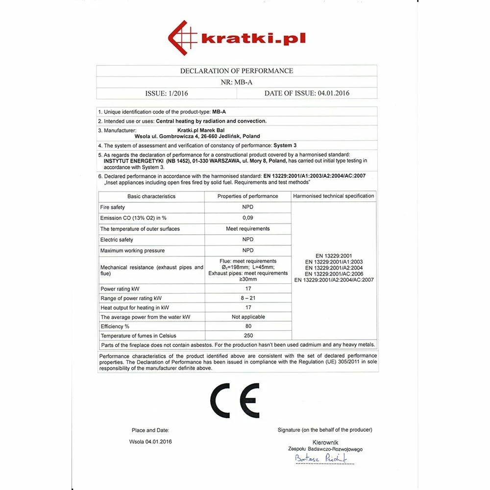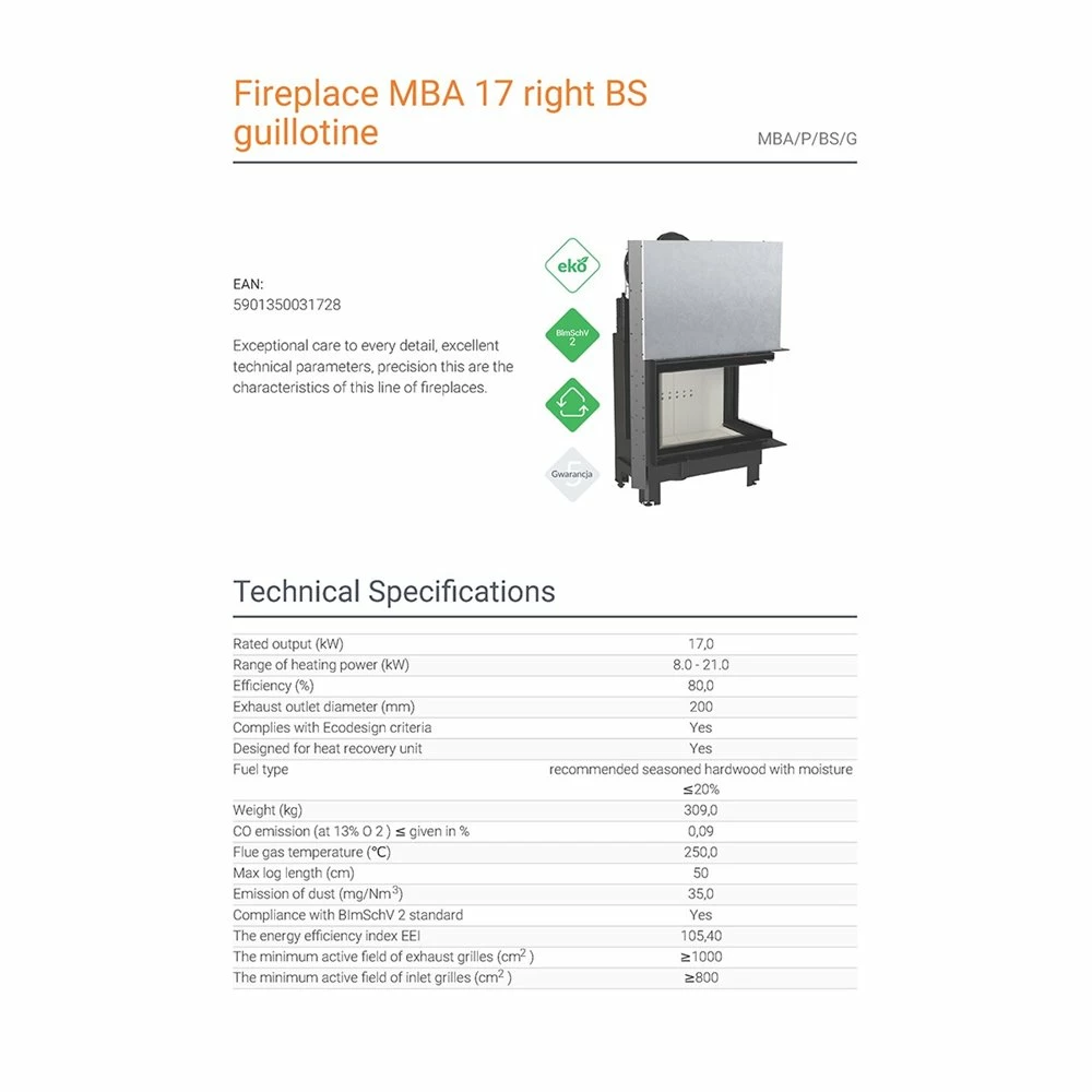 Ενεργειακό τζάκι αερόθερμο δεξιά γωνία με συρόμενη πόρτα KRATKI MBA/P/BS/G 17KW 160-200m2