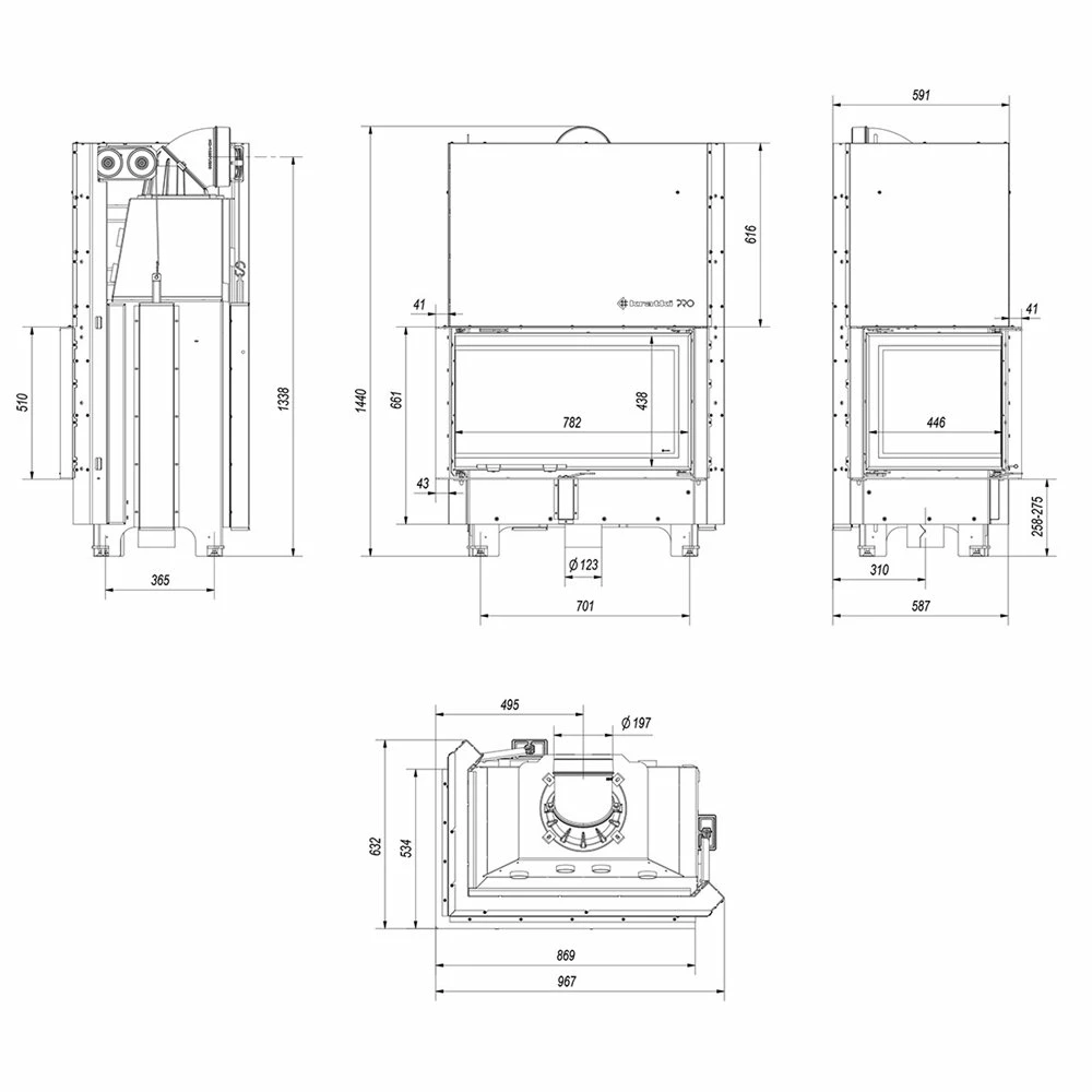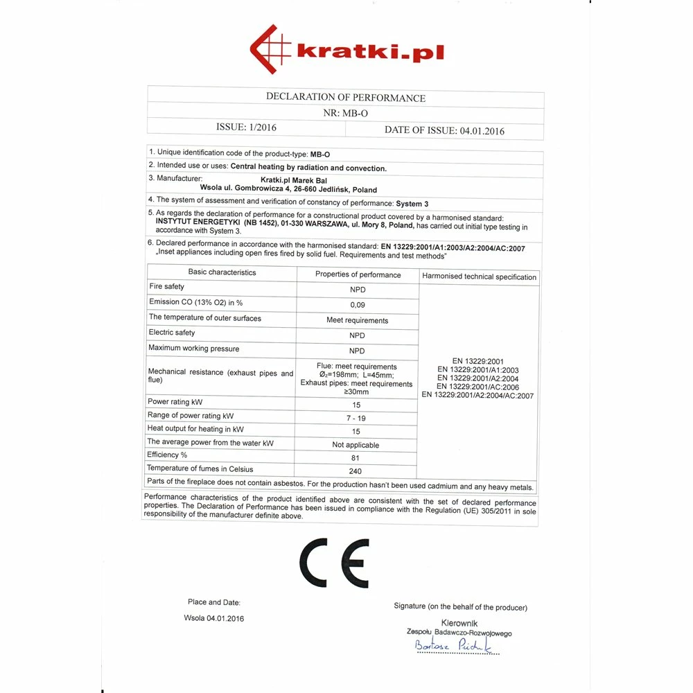 Ενεργειακό τζάκι αερόθερμο δεξιά γωνία με συρόμενη πόρτα KRATKI MBO/L/BS/G 15KW 140-180m2