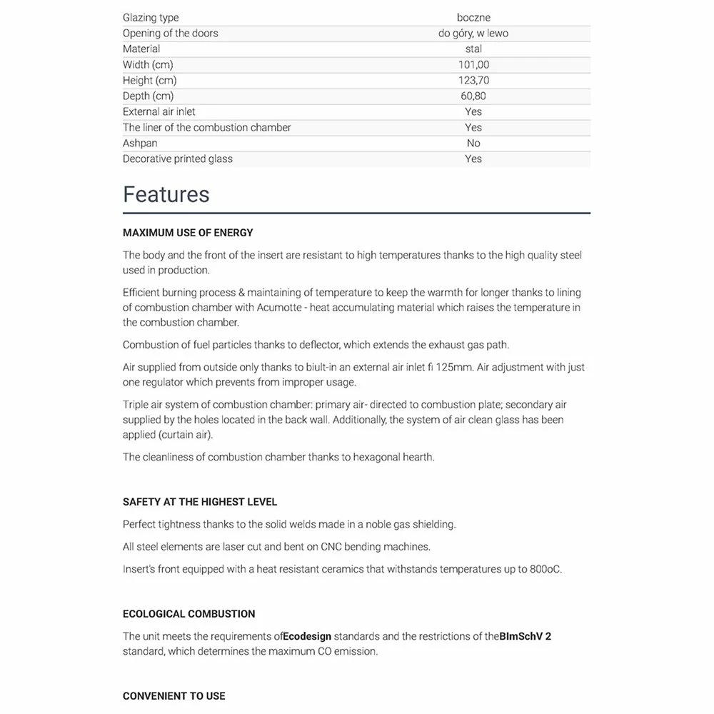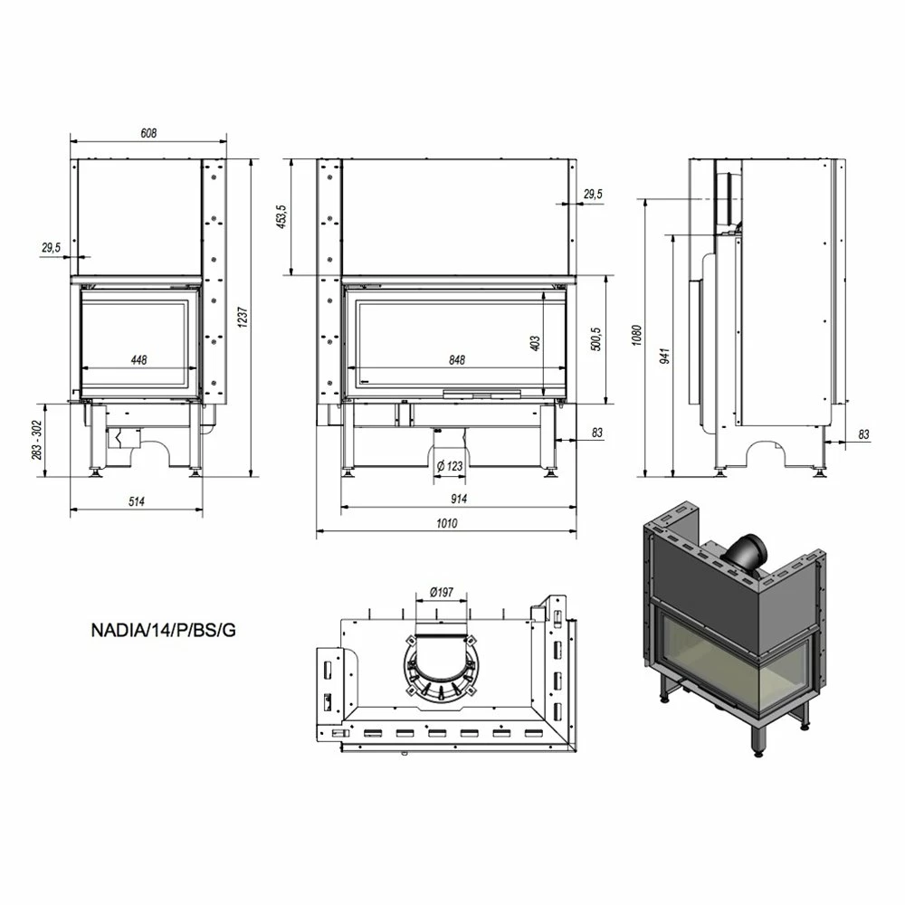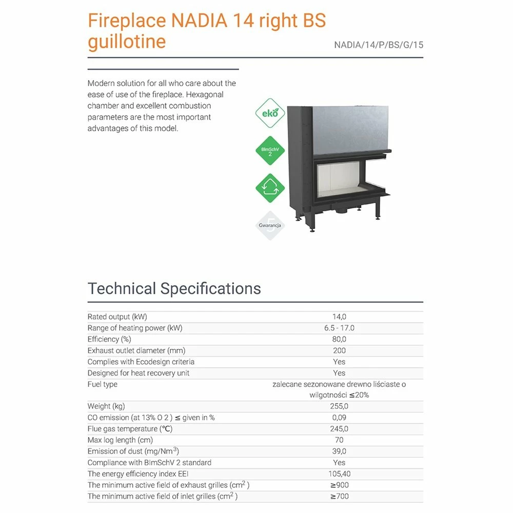 Ενεργειακό τζάκι αερόθερμο δεξιά γωνία με συρόμενη πόρτα KRATKI NADIA/14/P/BS/G 14KW / 120-140m2