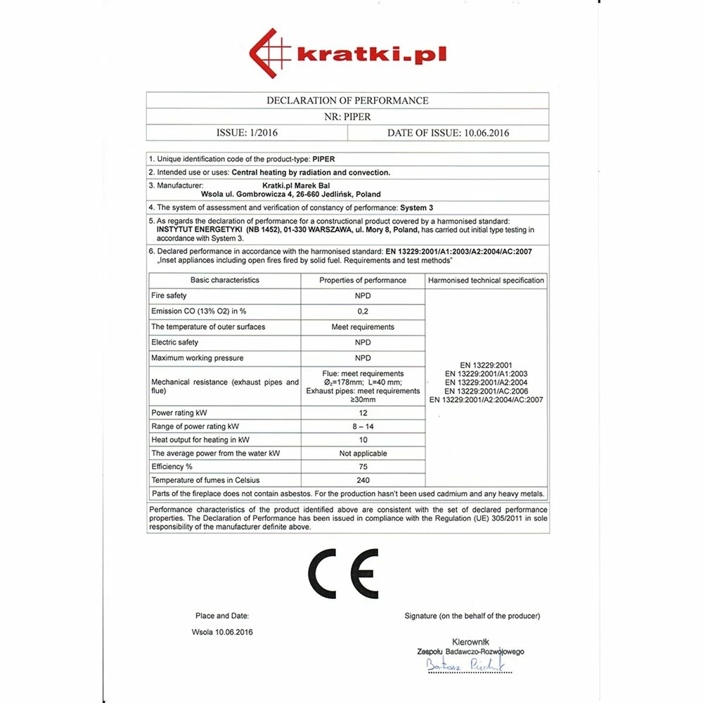 Ενεργειακό τζάκι αερόθερμο KRATKI PIPER/PF 10KW 80-100M2