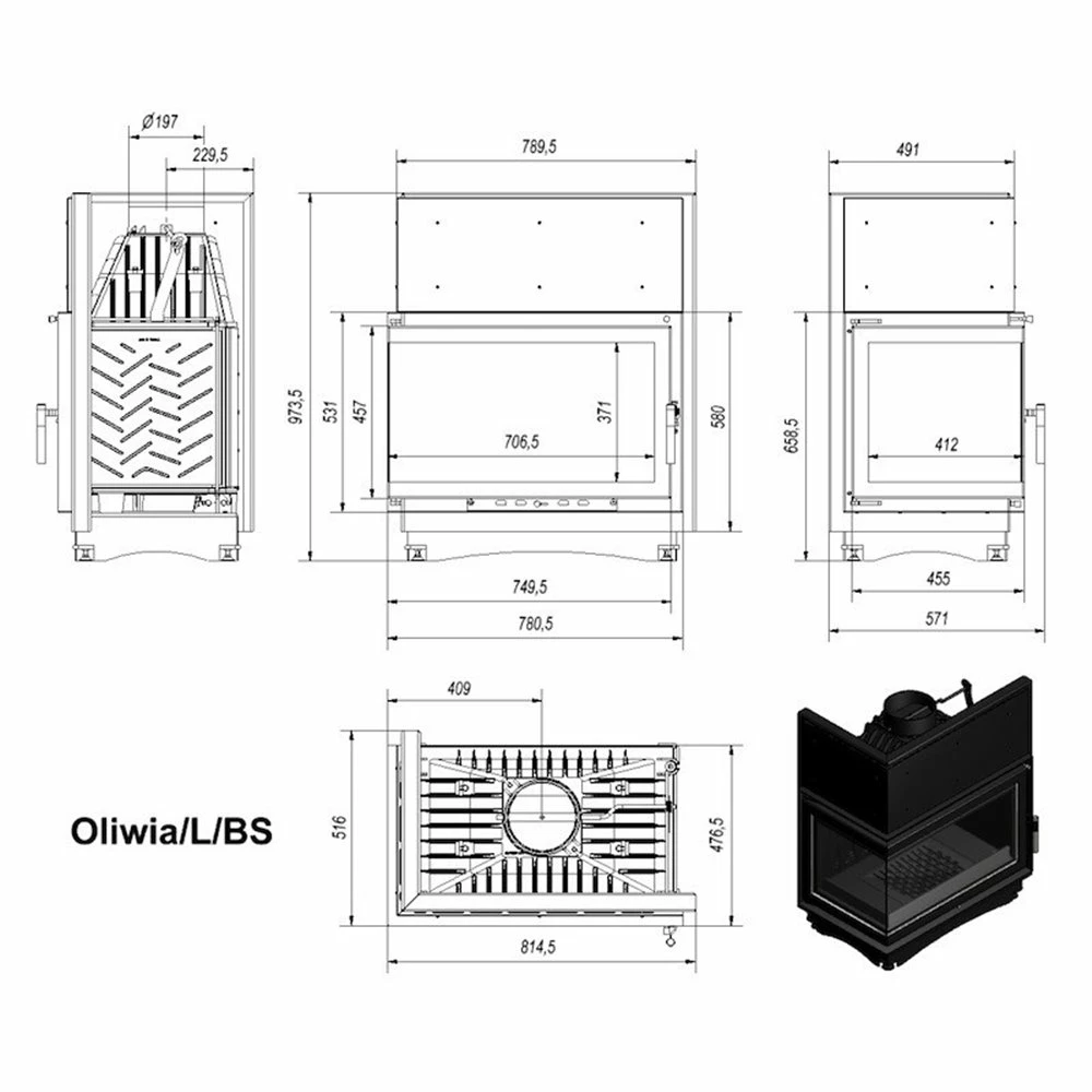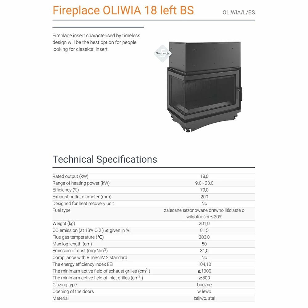 Ενεργειακό τζάκι αερόθερμο μαντεμένιο αριστερή γωνία KRATKI OLIWIA/L/BS 18KW / 150-180m2
