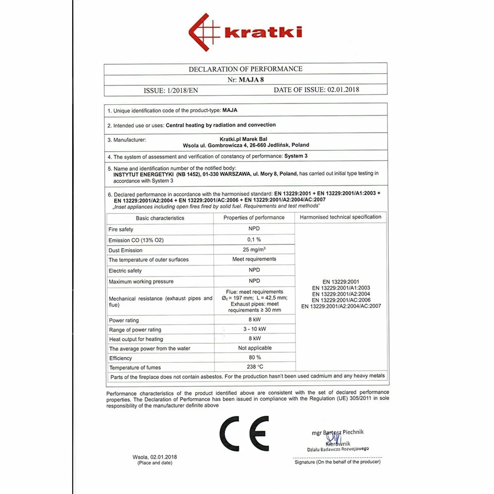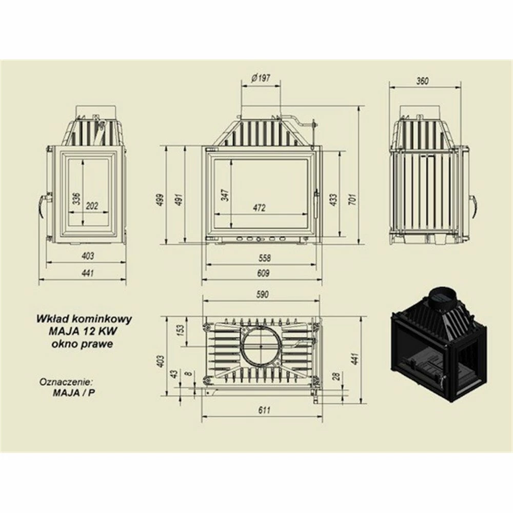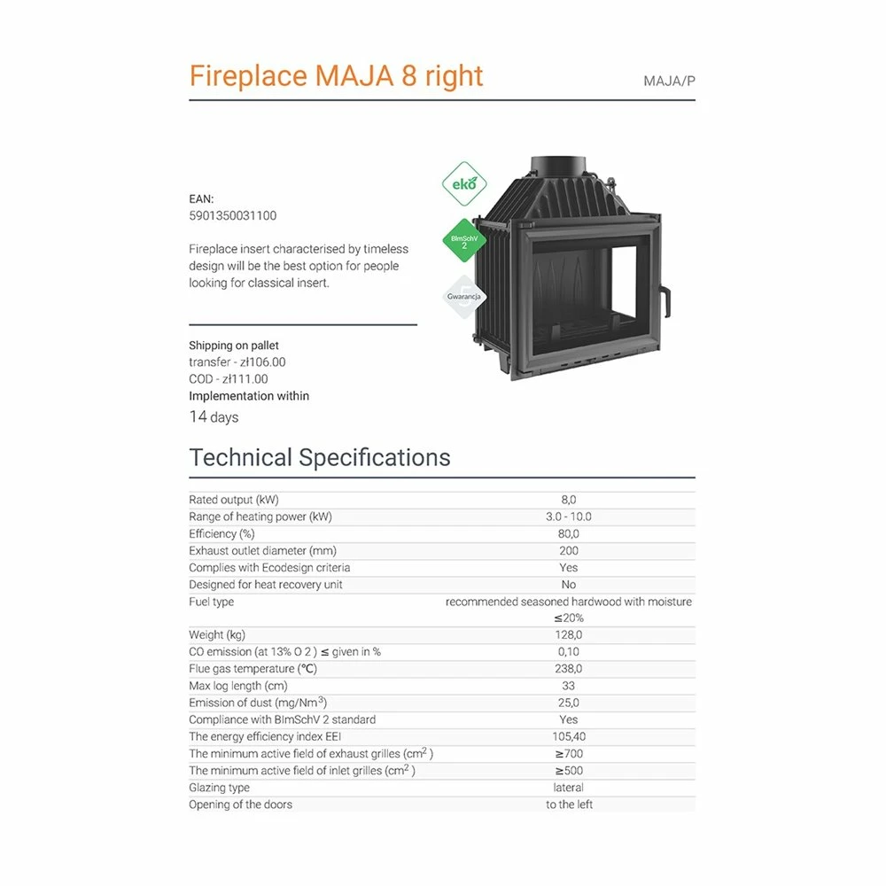 Ενεργειακό τζάκι αερόθερμο μαντεμένιο δεξιά γωνία KRATKI MAJA/P 8KW / 90-120m2