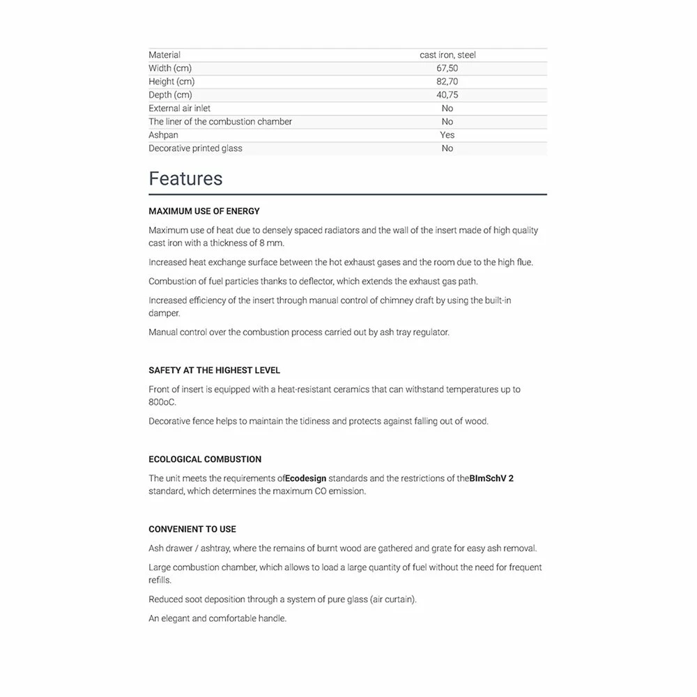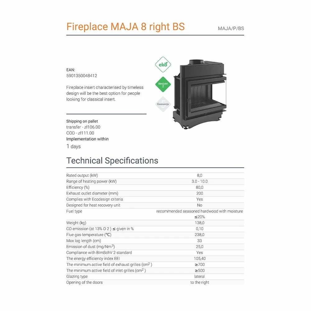 Ενεργειακό τζάκι αερόθερμο μαντεμένιο δεξιά γωνία KRATKI MAJA/P/BS 8KW / 90-120m2