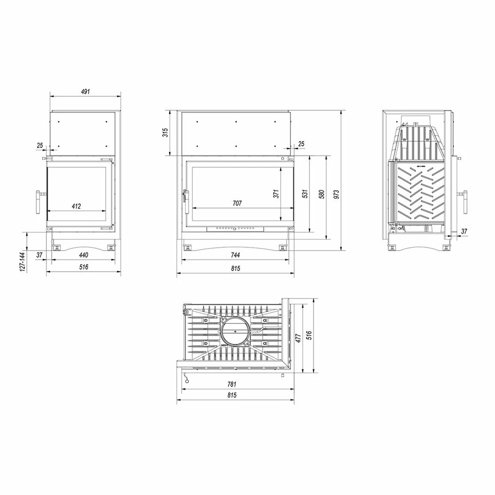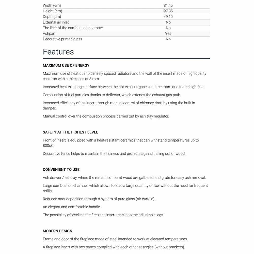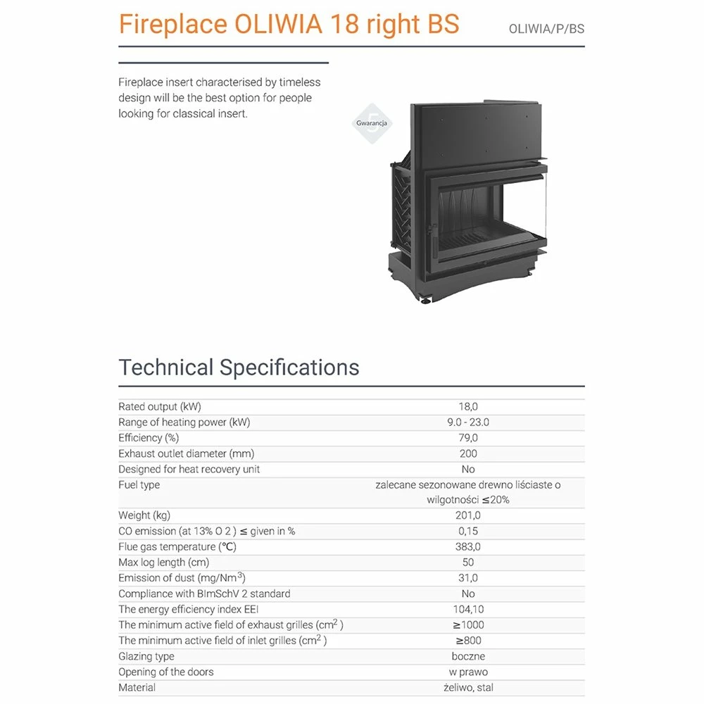 Ενεργειακό τζάκι αερόθερμο μαντεμένιο δεξιά γωνία KRATKI OLIWIA/P/BS 18KW / 150-180m2