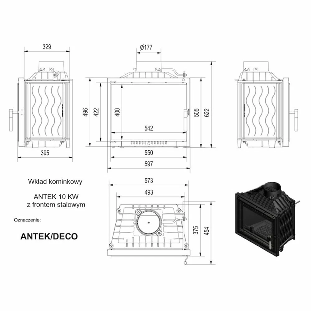Ενεργειακό τζάκι αερόθερμο μαντεμένιο ίσιο KRATKI ANTEK/DECO 10KW / 80-100m2