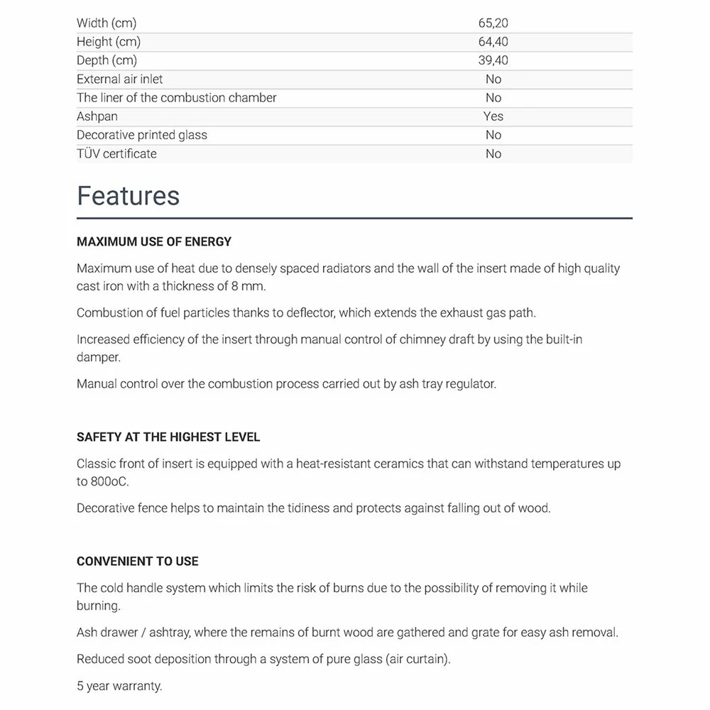 Ενεργειακό τζάκι αερόθερμο μαντεμένιο ίσιο KRATKI ERYK/PF 12KW / 100-130m2