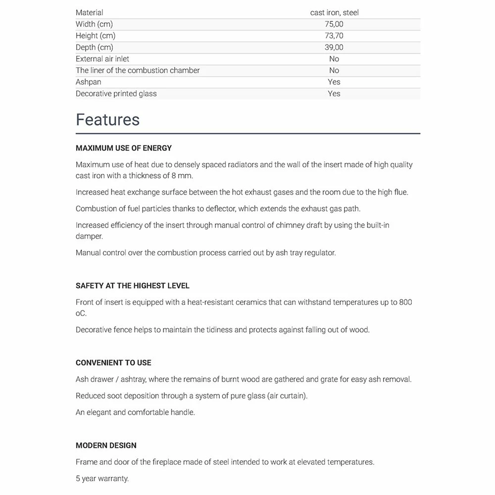 Ενεργειακό τζάκι αερόθερμο μαντεμένιο KRATKI FELIX/DECO 16KW / 140-160m2