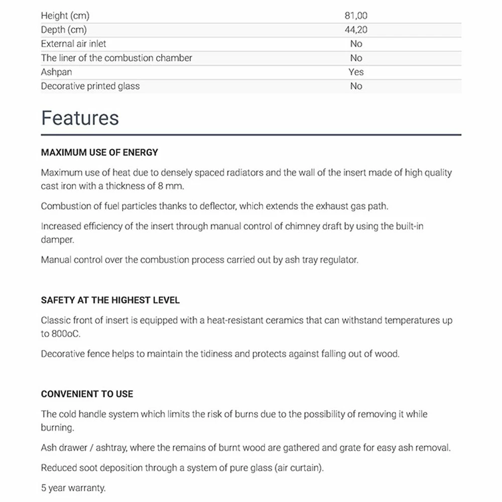 Ενεργειακό τζάκι αερόθερμο μαντεμένιο KRATKI ZUZIA/PF 16KW / 140-160m2