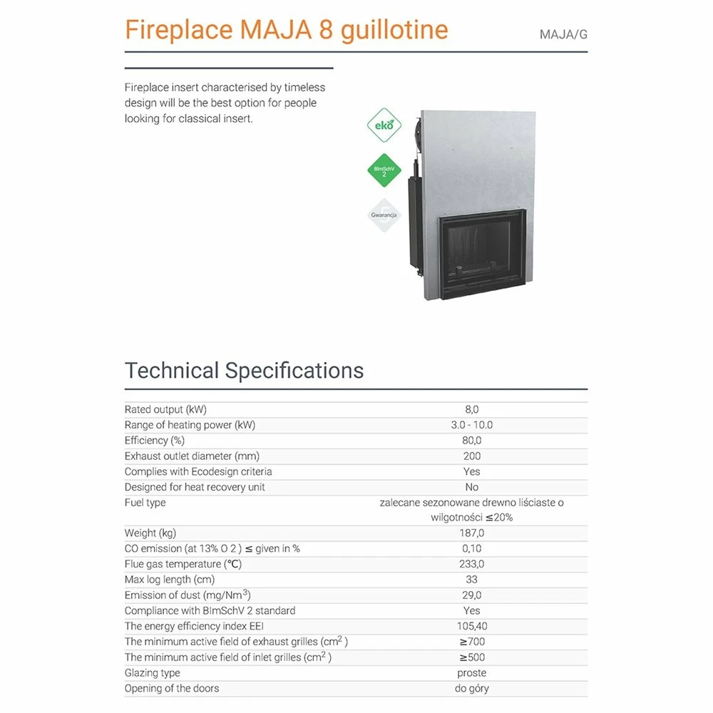 Ενεργειακό τζάκι αερόθερμο μαντεμένιο με συρόμενη επίπεδη πόρτα KRATKI MAJA/G 8KW / 90-120m2