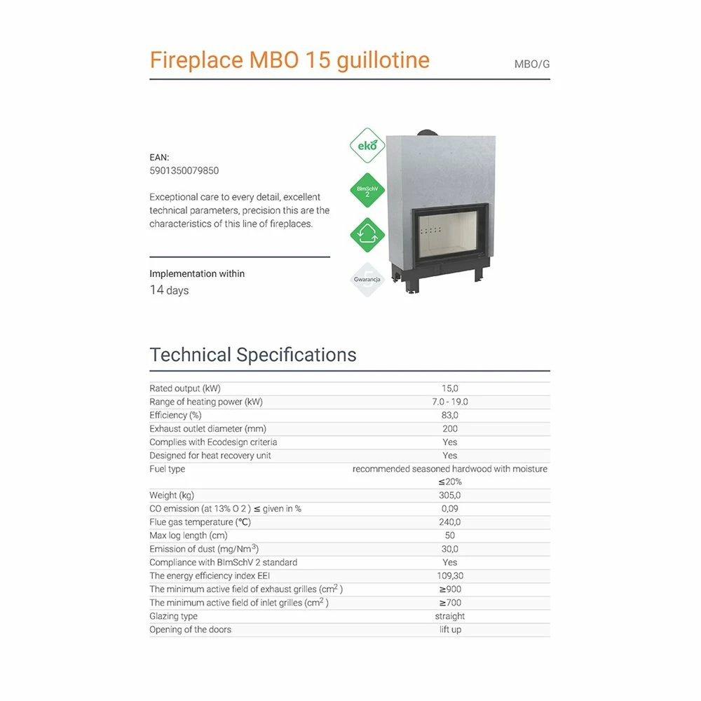 Ενεργειακό τζάκι αερόθερμο με συρόμενη πόρτα KRATKI MBO/G 15KW 140-180m2