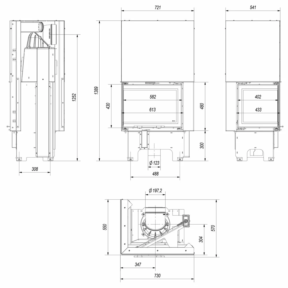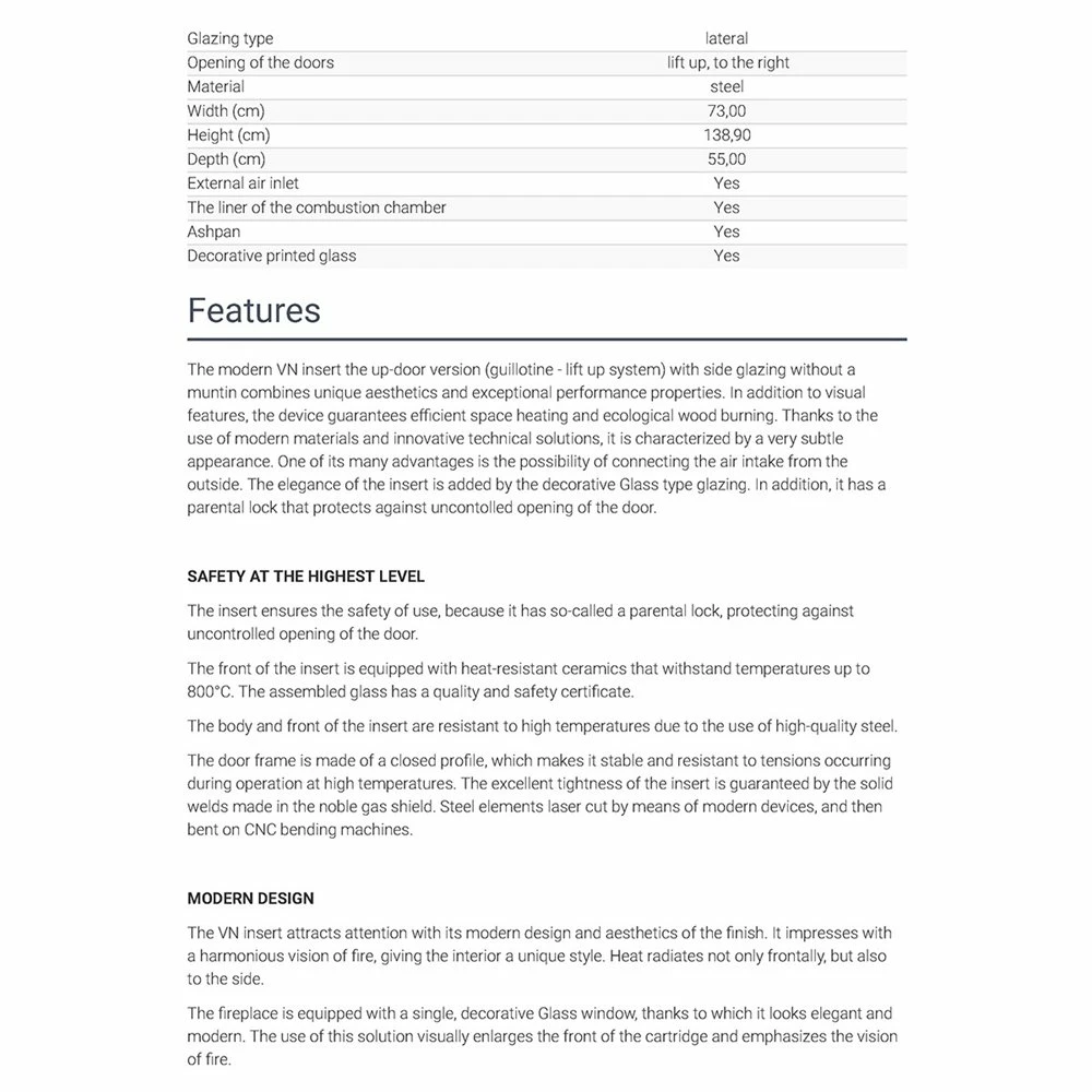 Ενεργειακό τζάκι αερόθερμο συρόμενη πόρτα αριστερή γωνία KRATKI VNL/610/430 9KW 90-115M2