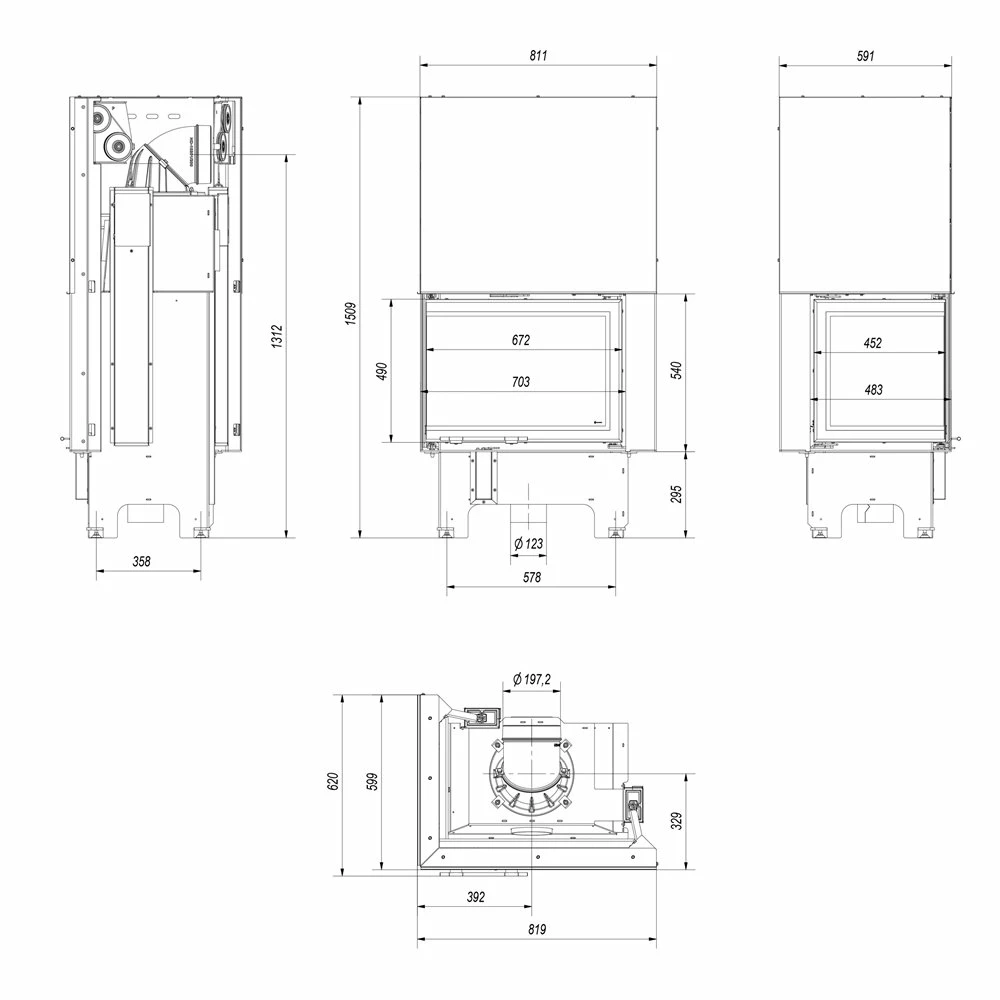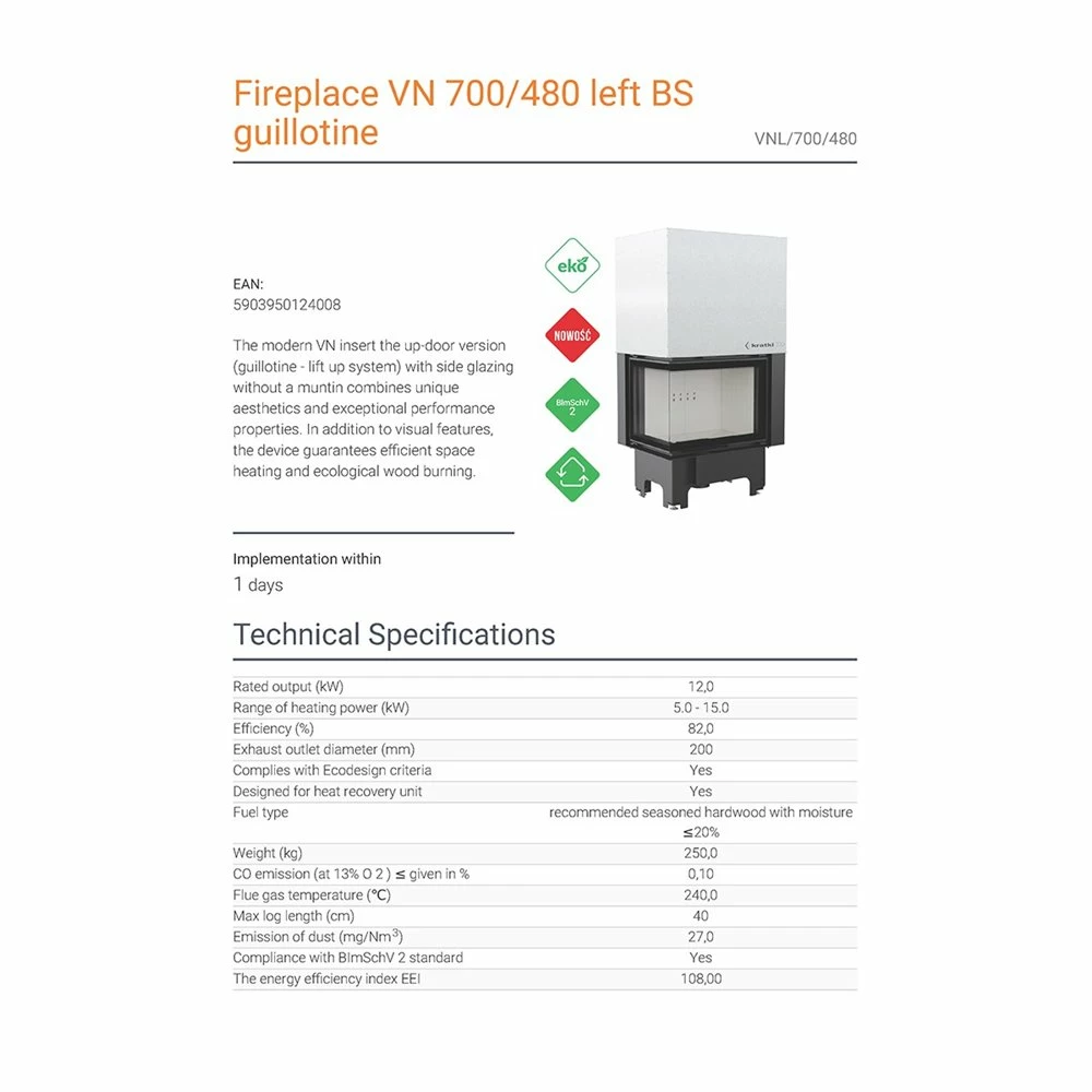 Ενεργειακό τζάκι αερόθερμο συρόμενη πόρτα αριστερή γωνία KRATKI VNL/700/480 12KW 105 -155M2