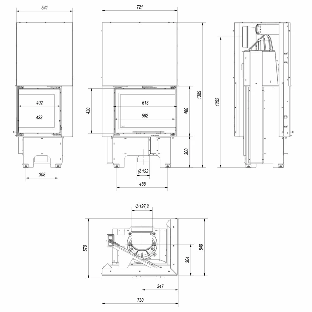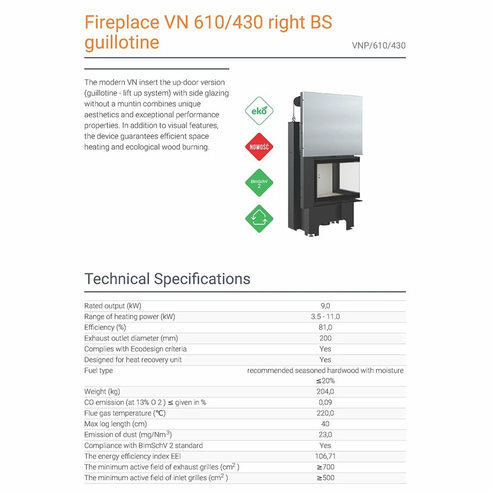 Ενεργειακό τζάκι αερόθερμο συρόμενη πόρτα δεξιά γωνία KRATKI VNP/610/430 9KW 90-115M2