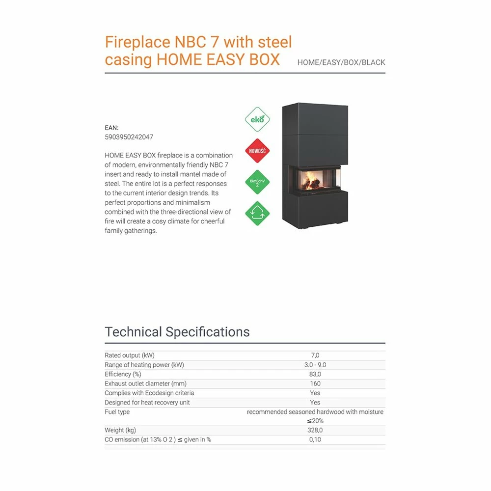 Ενεργειακό τζάκι άμεσης τοποθέτησης συρόμενη πόρτα KRATKI HOME/EASY/BOX/BLACK 7KW (50-80M2) (NBC/680/280)