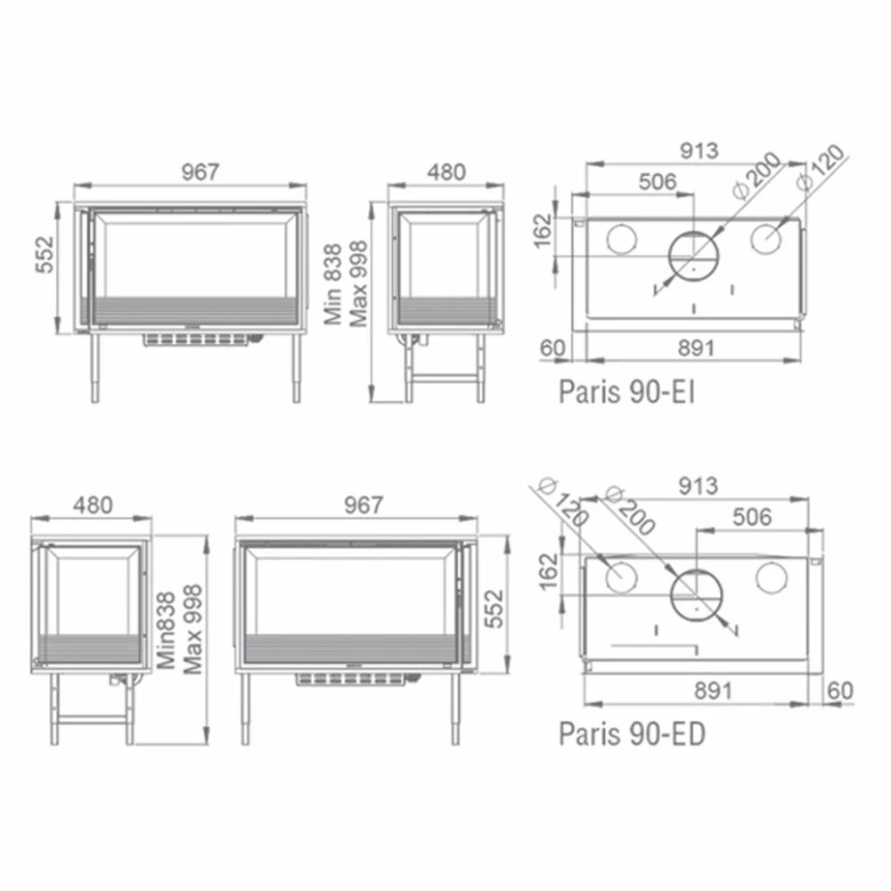 Ενεργειακό Τζάκι BRONPI PARIS 90 EI VISION 17,5 KW Αριστερό τζάμι