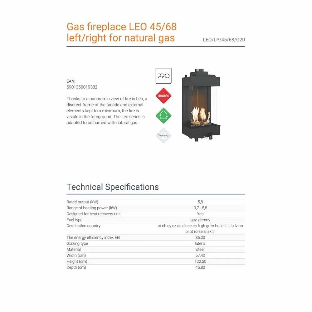 Ενεργειακό τζάκι φυσικού αερίου 3 όψεων KRATKI LEO/LP/45/68/G20