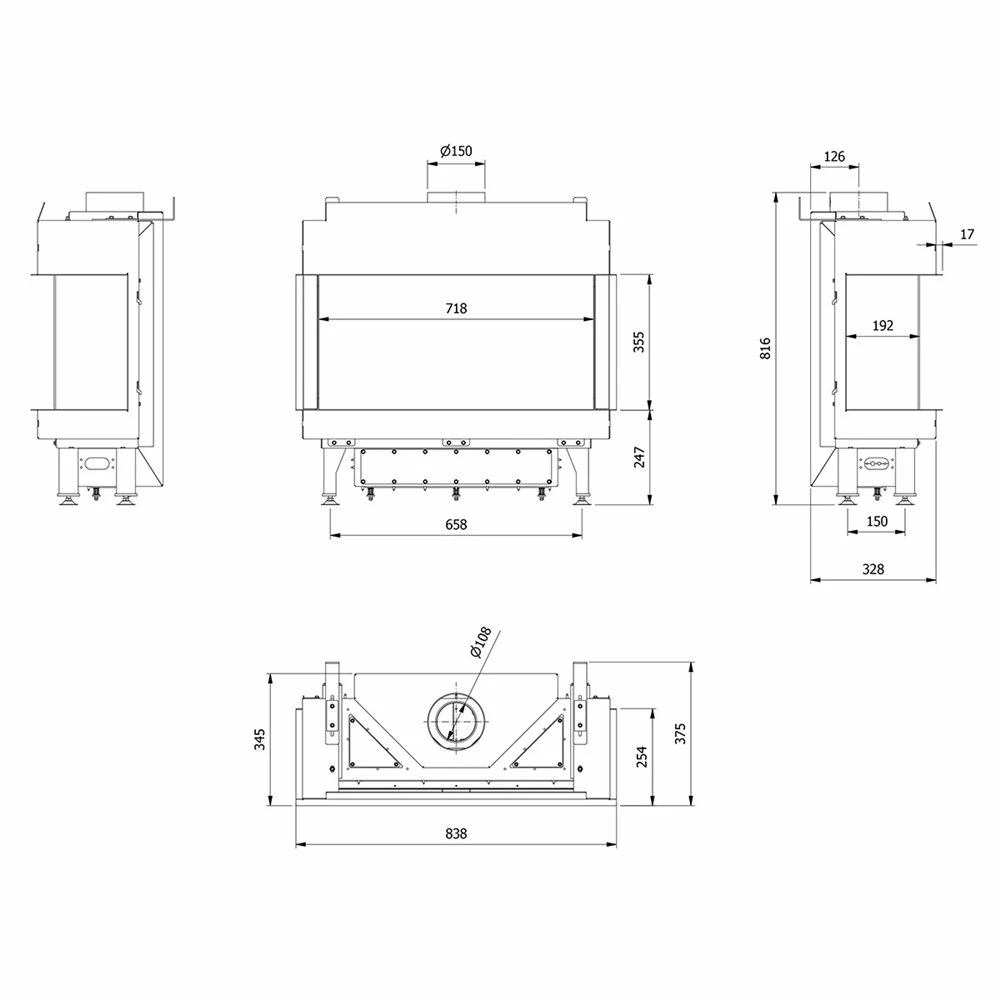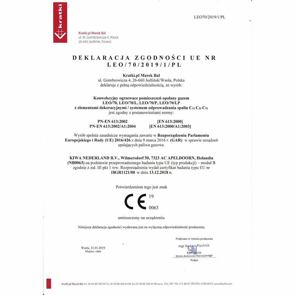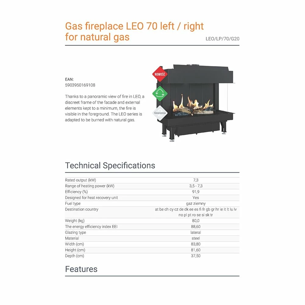 Ενεργειακό τζάκι φυσικού αερίου 3 όψεων KRATKI LEO/LP/70/G20 7,8KW (65M2)
