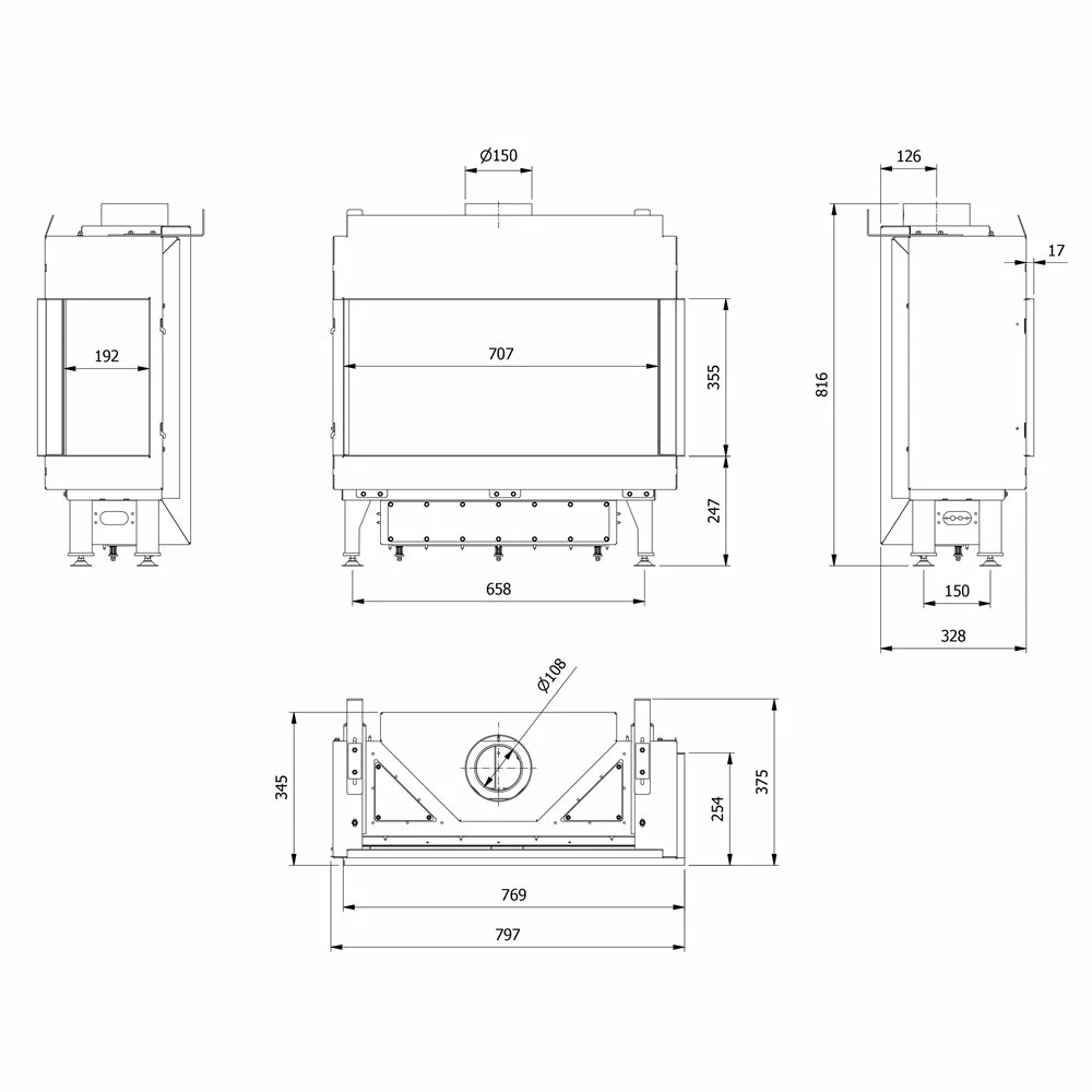 Ενεργειακό τζάκι φυσικού αερίου δεξιά γωνία KRATKI LEO/P/70/G20 7,8KW (65M2)