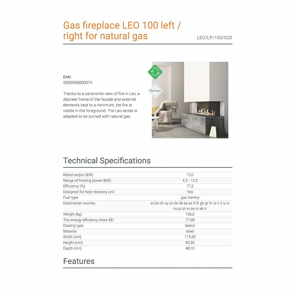 Ενεργειακό τζάκι φυσικού αερίου KRATKI LEO/100/G20