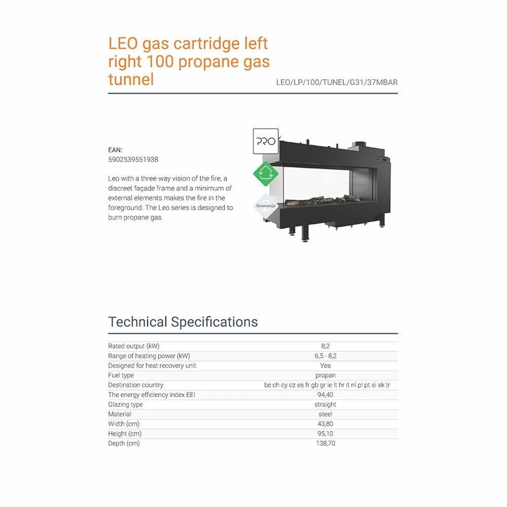 Ενεργειακό τζάκι υγραερίου 3 όψεων KRATKI LEO/LP/100/TUNEL/G31/37MBAR