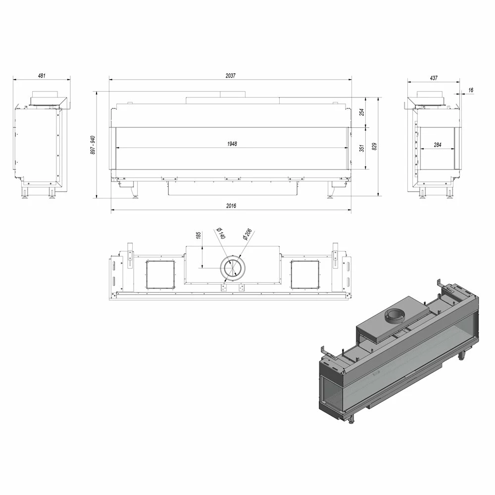 Ενεργειακό τζάκι υγραερίου αριστερή γωνία KRATKI LEO/L/200/G31/37MBAR 8,5-17KW (90-180M2)