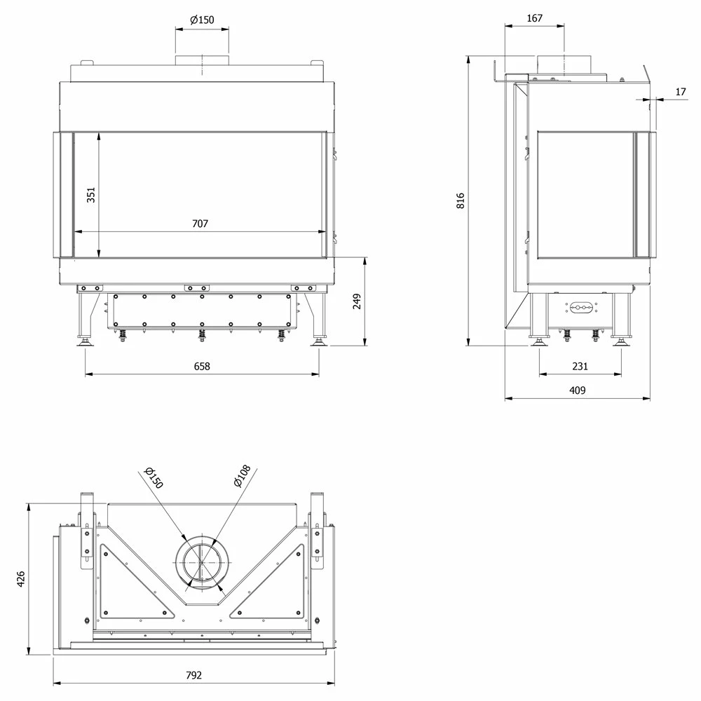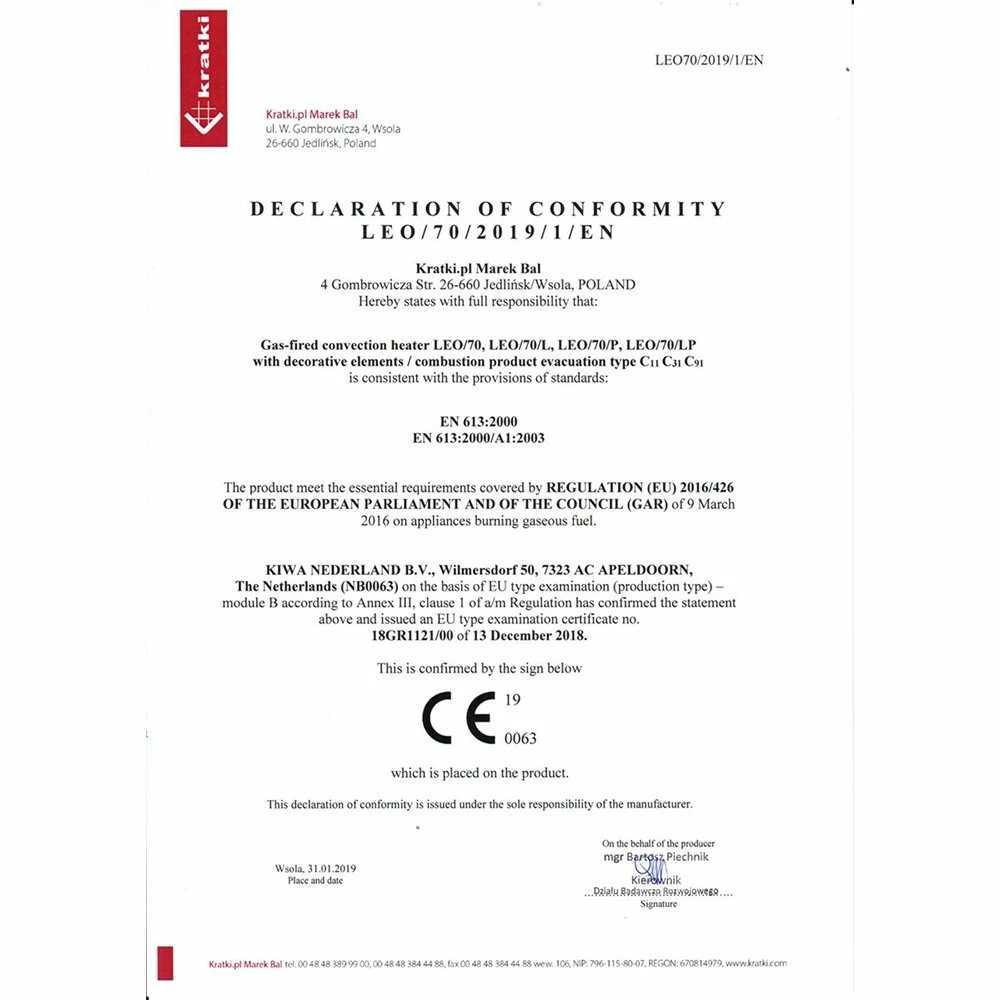 Ενεργειακό τζάκι υγραερίου αριστερή γωνία KRATKI LEO/L/70/G31/37MBAR