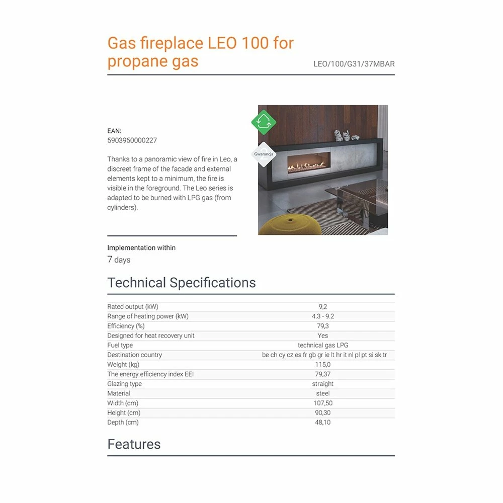 Ενεργειακό τζάκι υγραερίου KRATKI LEO/100/G31/37MBAR