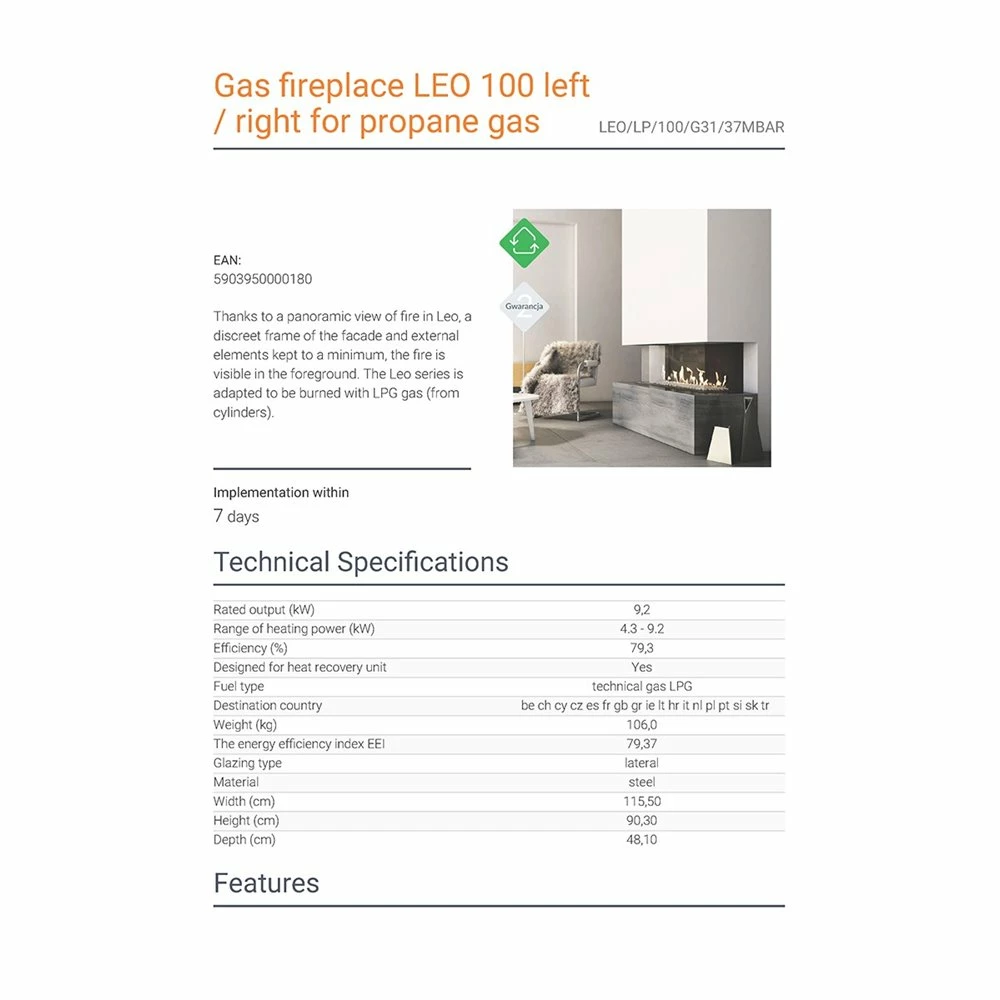 Ενεργειακό τζάκι υγραερίου τριών όψεων KRATKI LEO/LP/100/G31/37MBAR