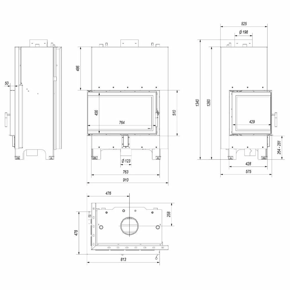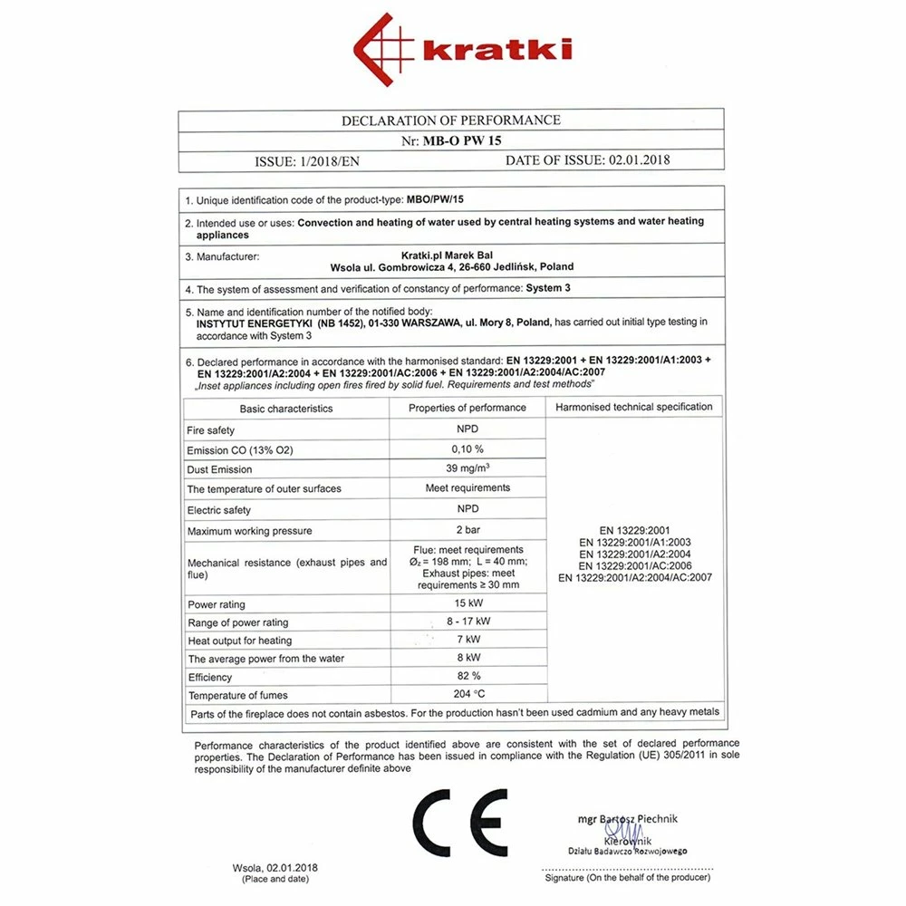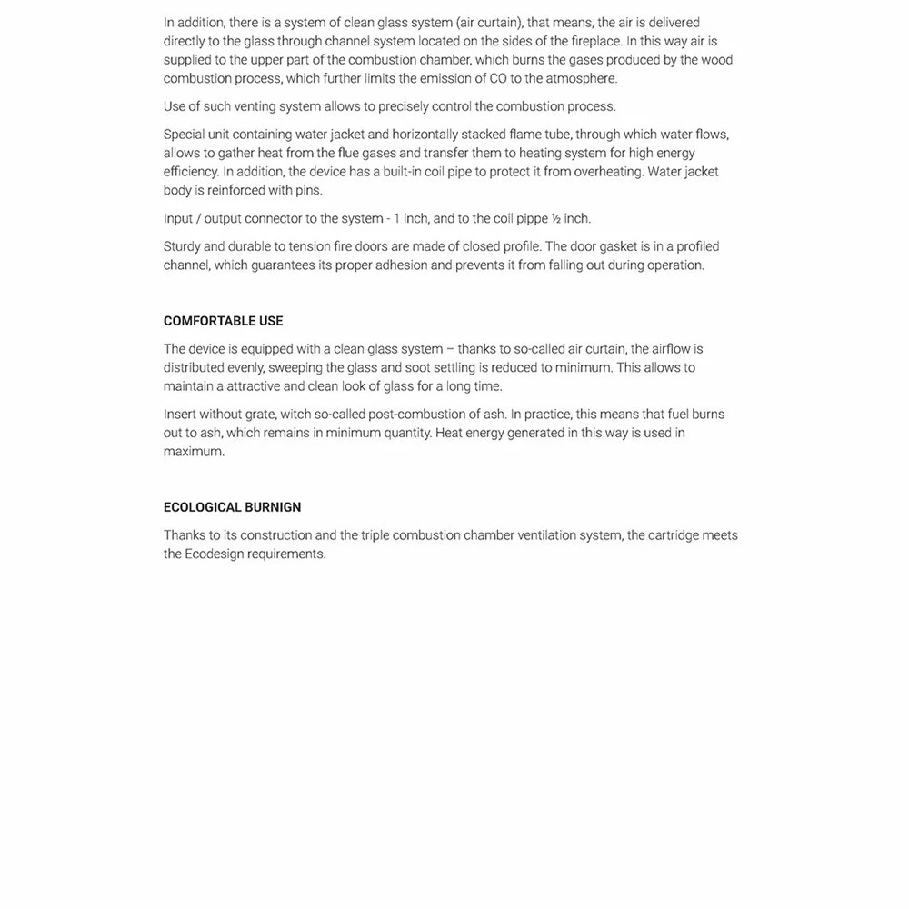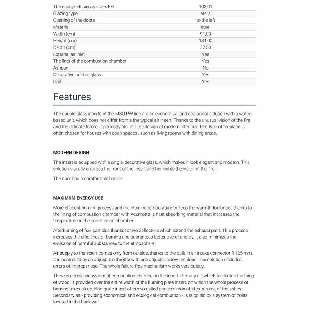 Ενεργειακό τζάκι καλοριφέρ αριστερή γωνία κλειστού δοχείου KRATKI MBO/PW/15/L/BS/W 15KW 100-180M2