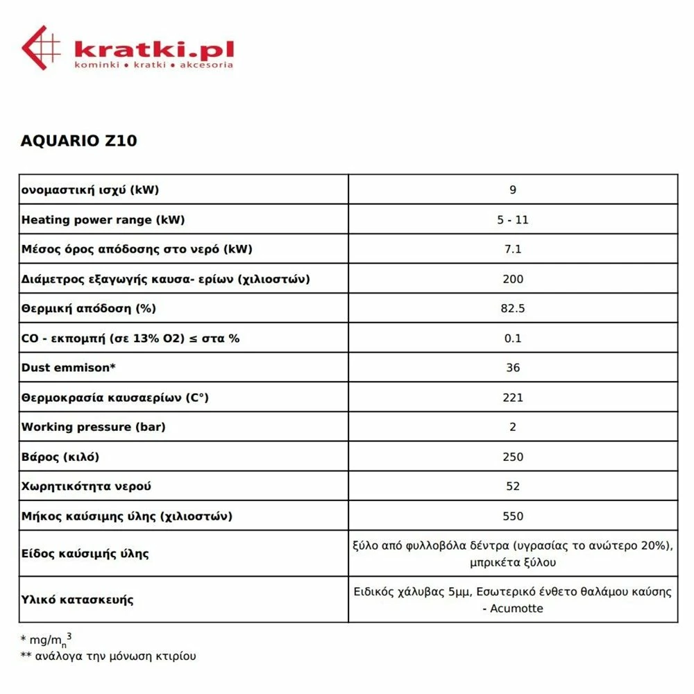 Ενεργειακο τζάκι καλοριφέρ κλειστού δοχείου KRATKI AQUARIO/Z/10/PW/W 10KW