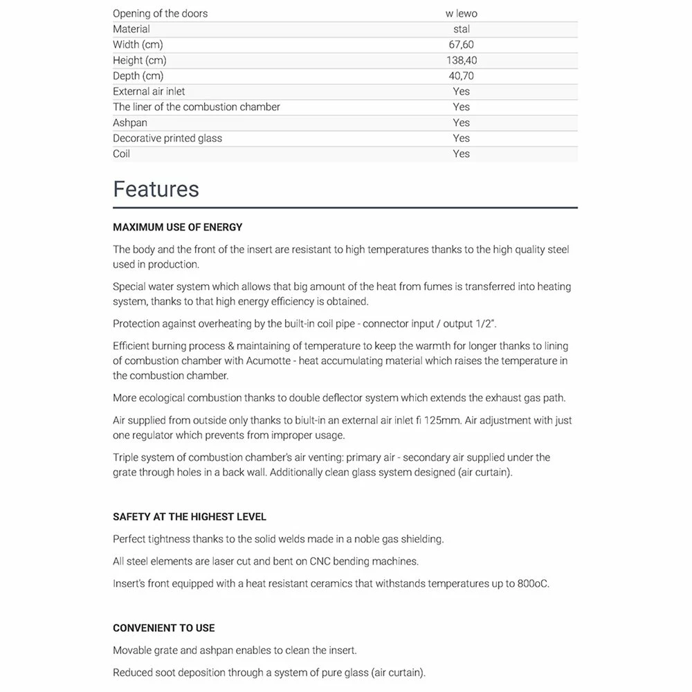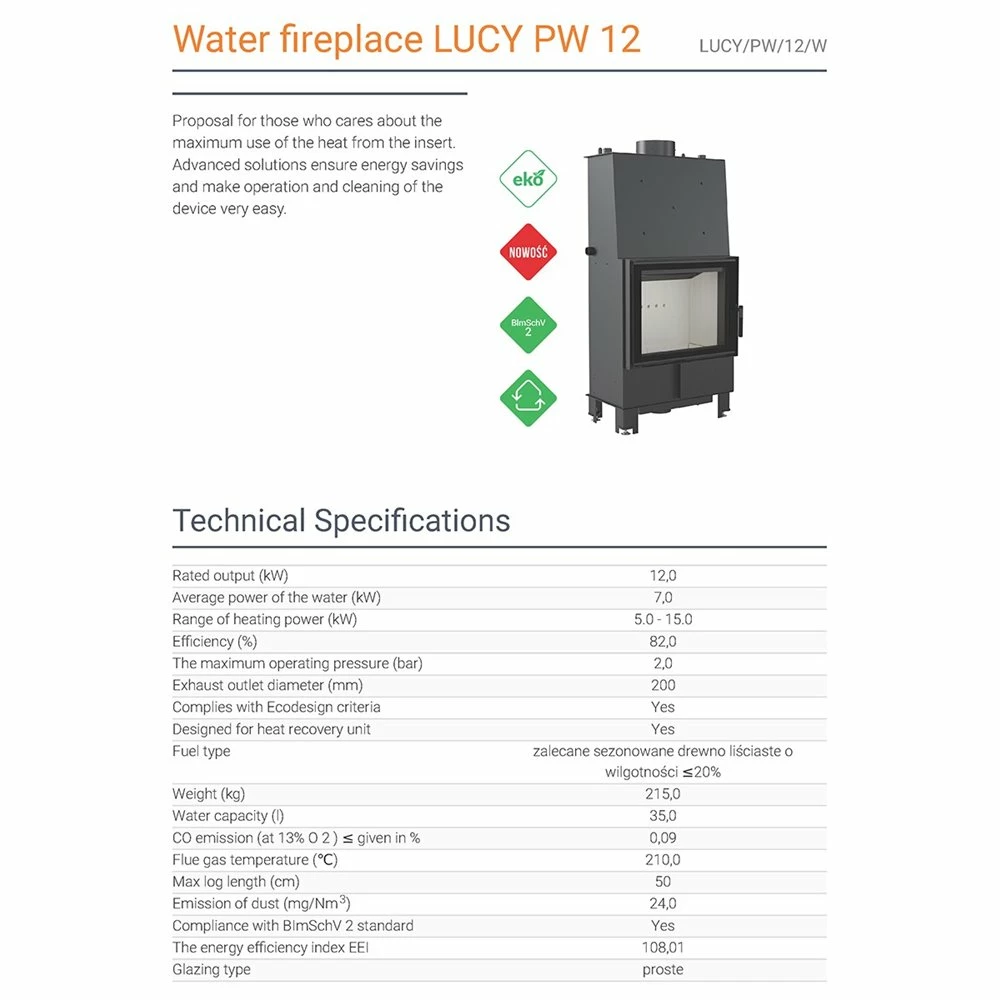 Ενεργειακό τζάκι καλοριφέρ κλειστού δοχείου KRATKI LUCY/PW/12/W 12KW 80-155M2