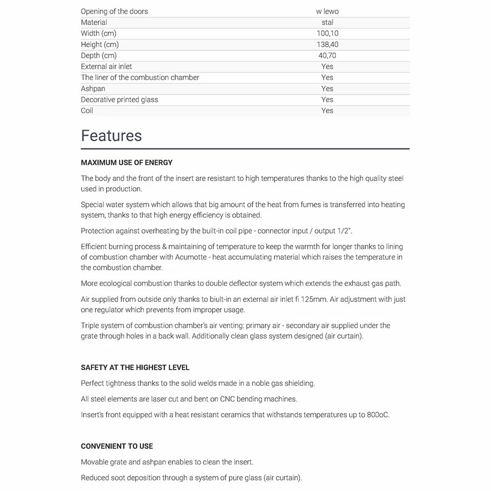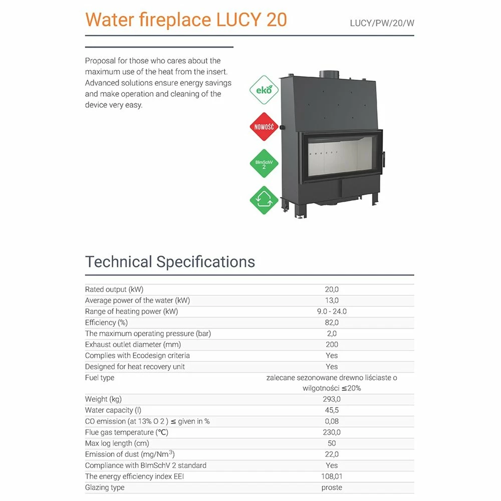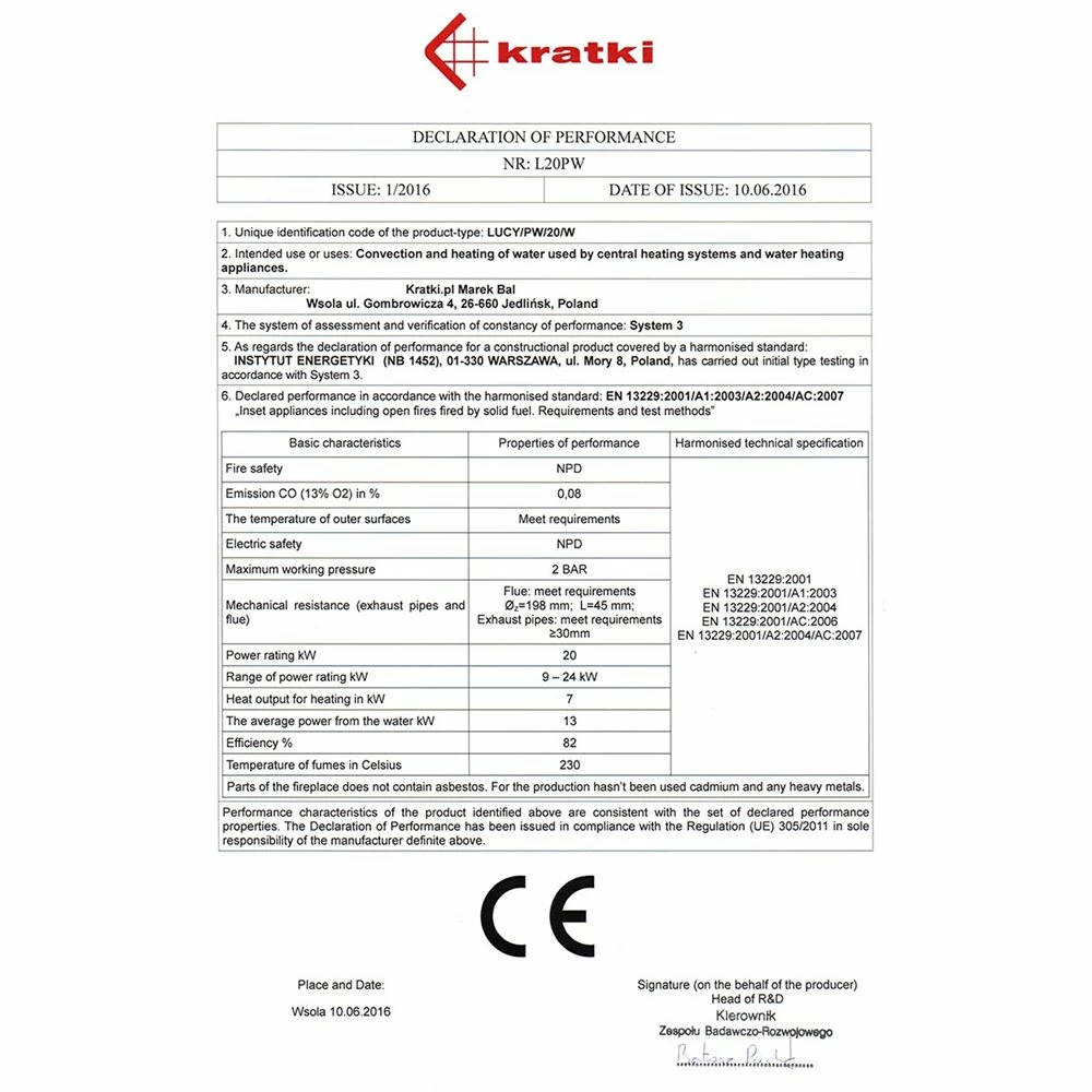 Ενεργειακό τζάκι καλοριφέρ κλειστού δοχείου KRATKI LUCY/PW/20/W 20KW 150-255M2