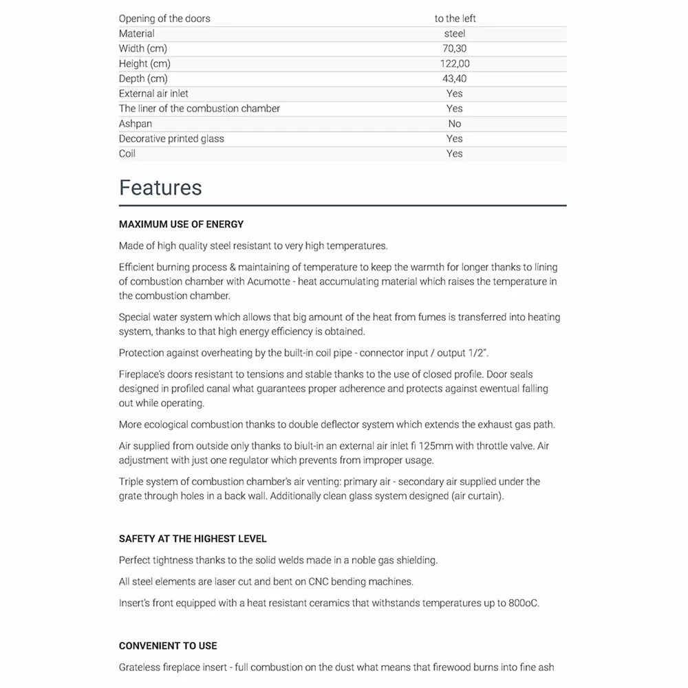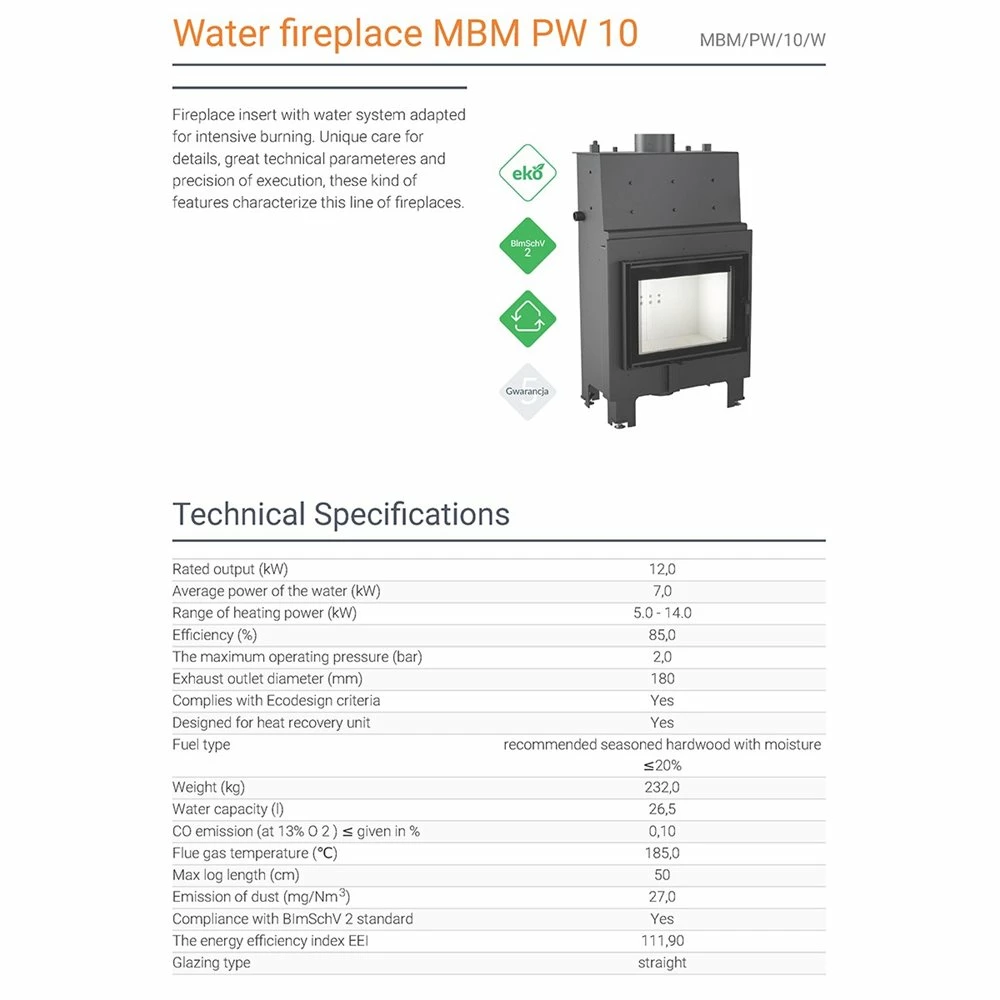 Ενεργειακό τζάκι καλοριφέρ κλειστού δοχείου KRATKI MBM/PW/10/W 10KW 90-140M2