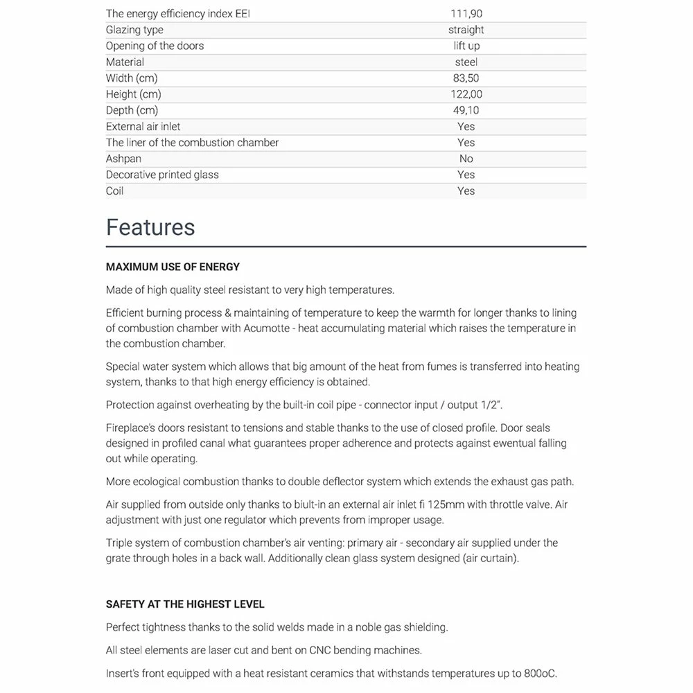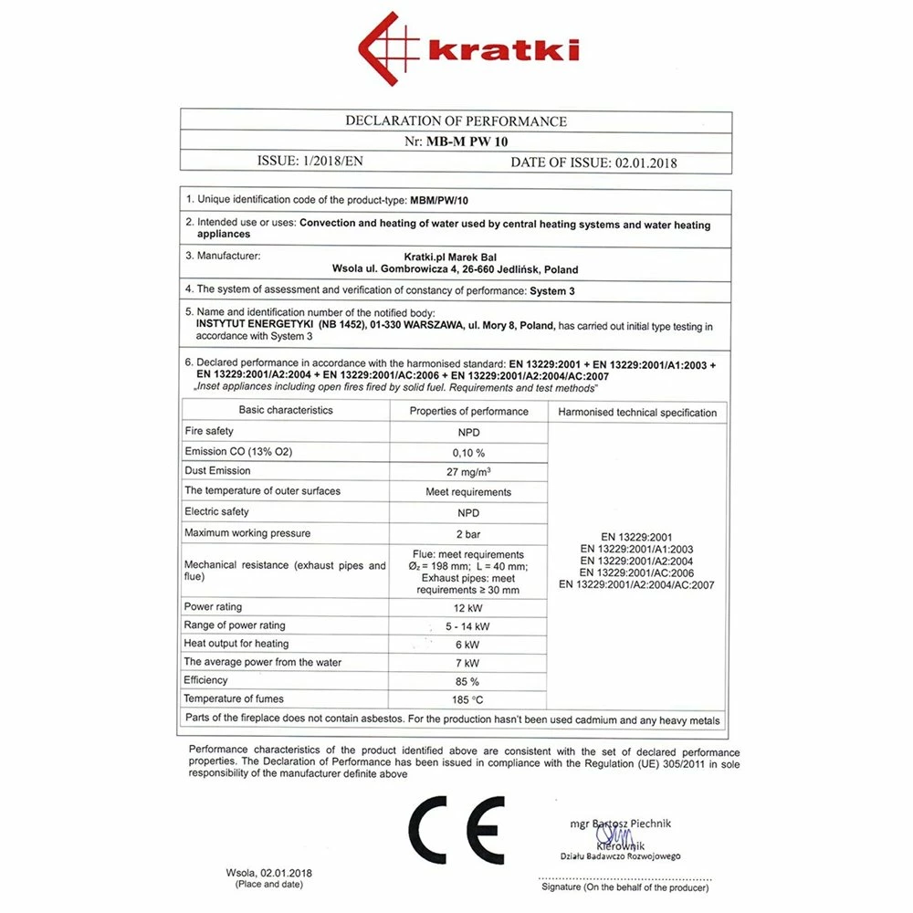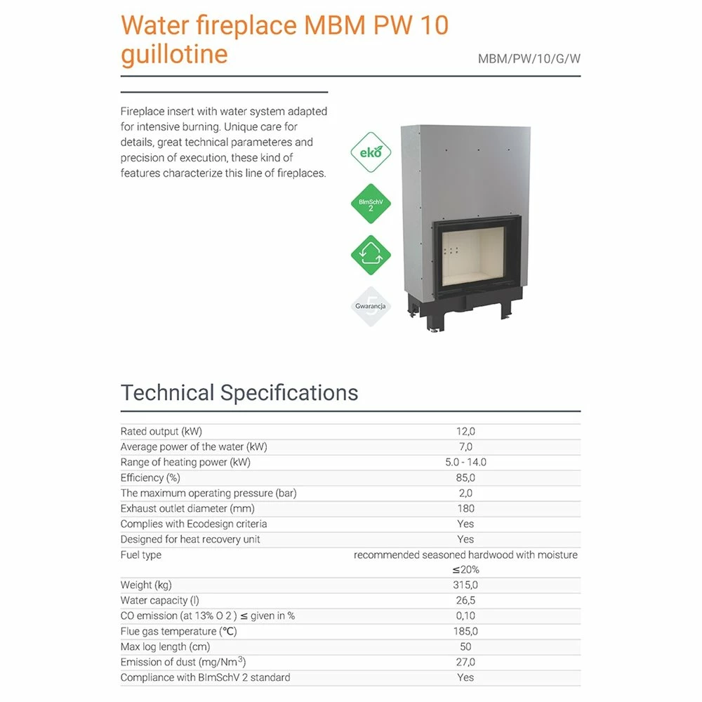 Ενεργειακό τζάκι καλοριφέρ με συρόμενη πόρτα κλειστού δοχείου KRATKI MBM/PW/10/G/W 10KW 90-140M2