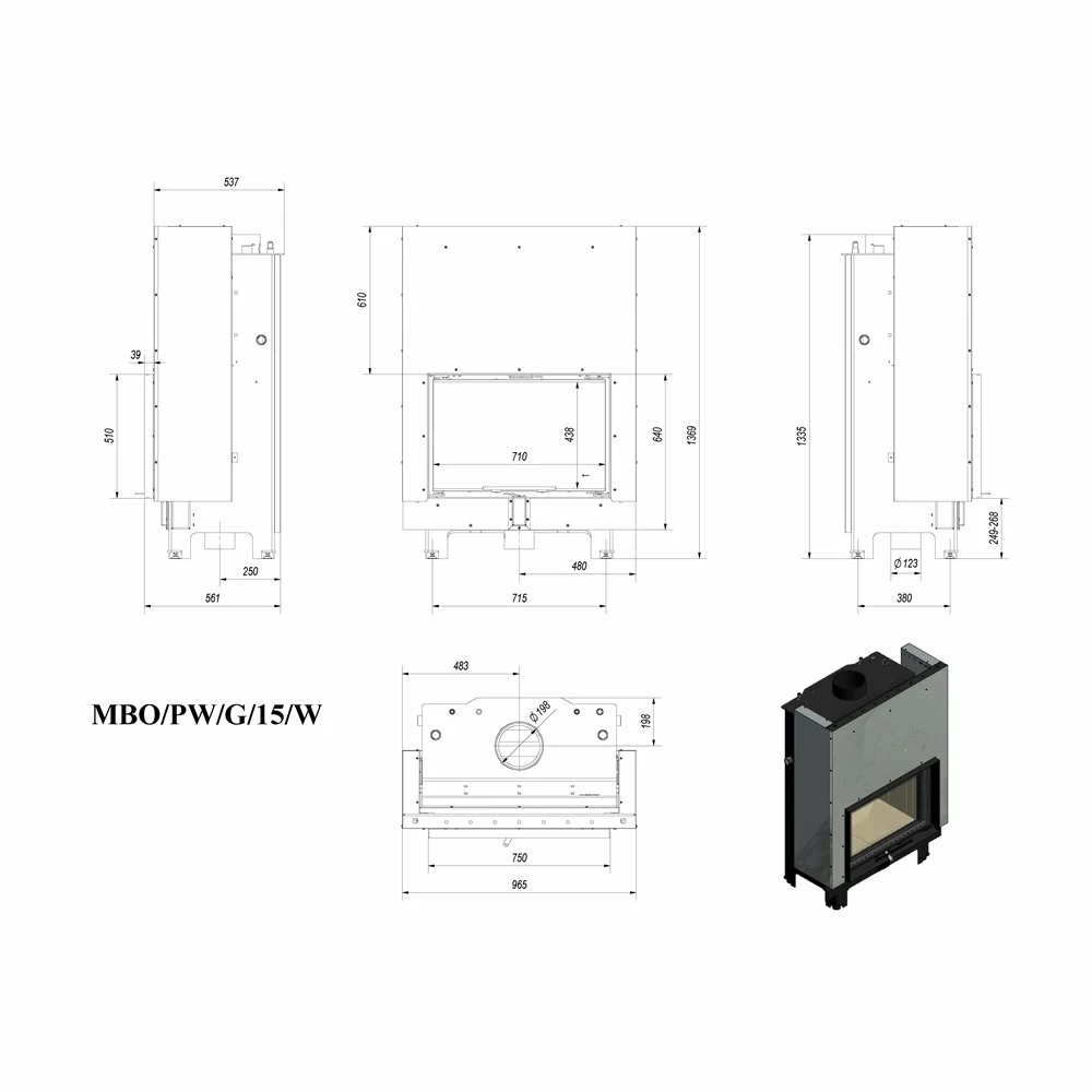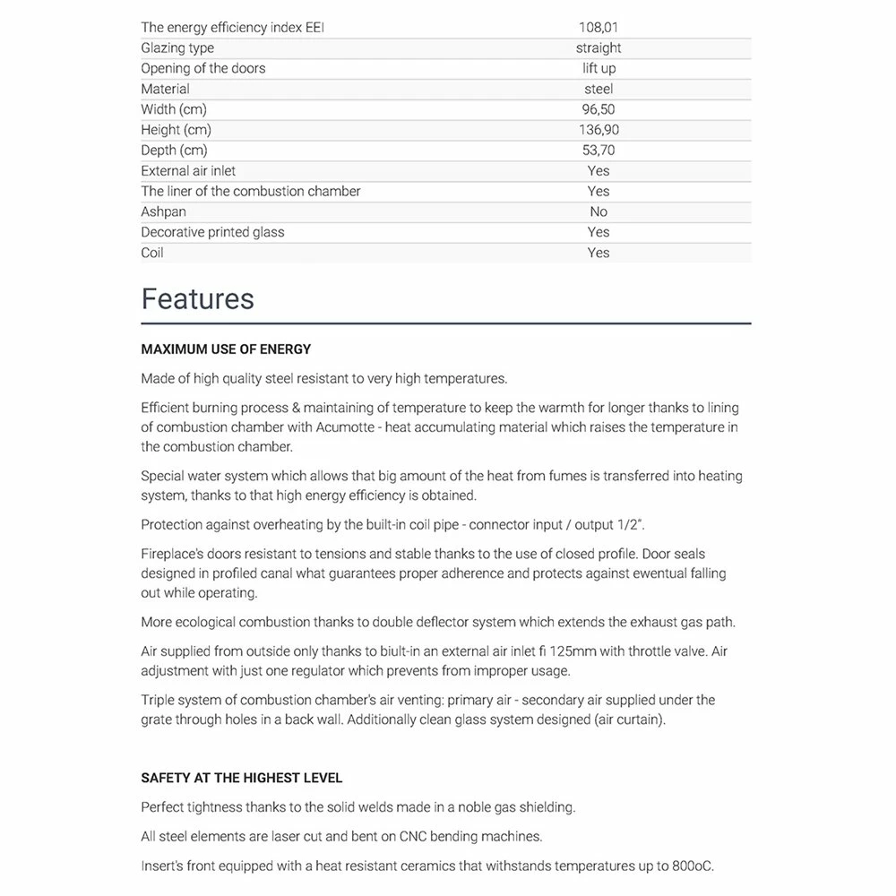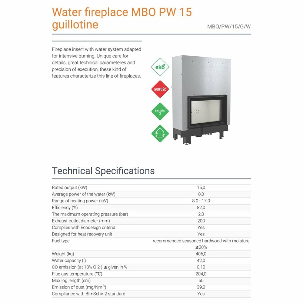 Ενεργειακό τζάκι καλοριφέρ με συρόμενη πόρτα κλειστού δοχείου KRATKI MBO/PW/15/G/W 15KW 100-180M2