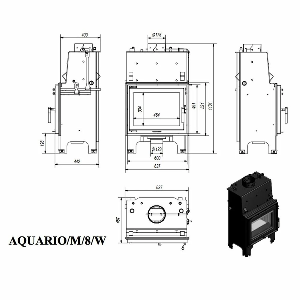 Ενεργειακό τζάκι κλειστού δοχείου KRATKI AQUARIO/M/8/PW/W 8KW / 100-180m2
