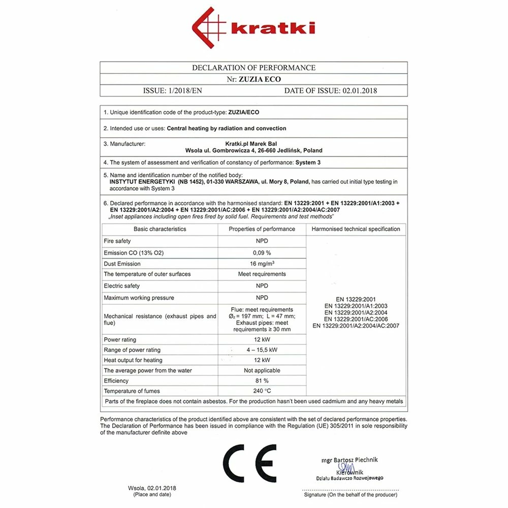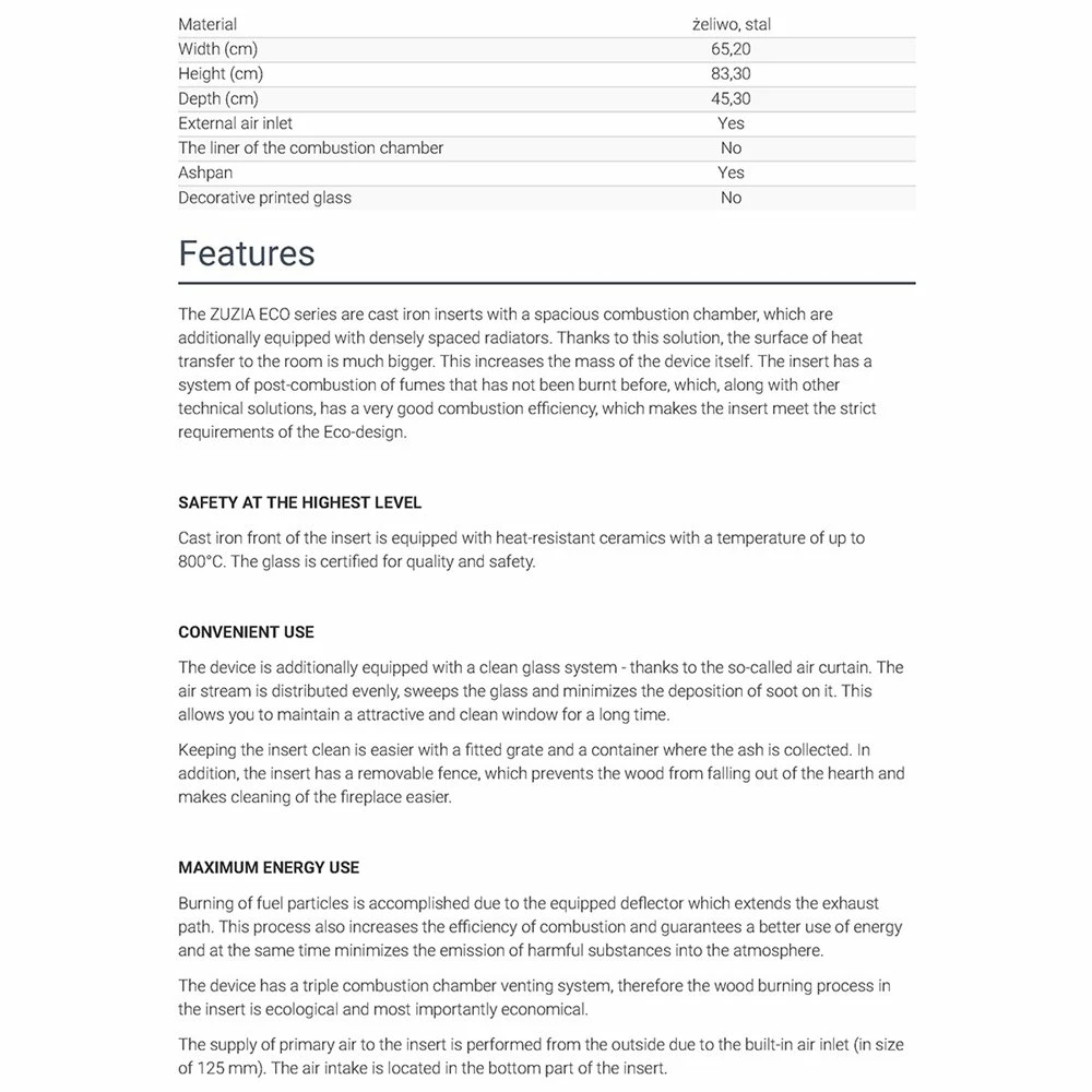 Ενεργειακό τζάκι μαντεμένιο αερόθερμο KRATKI ZUZIA/ECO 12KW / 120-160m2