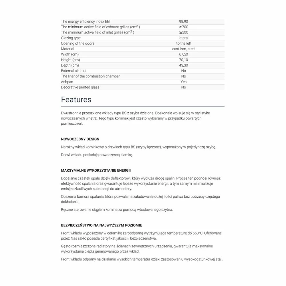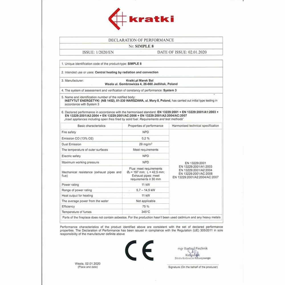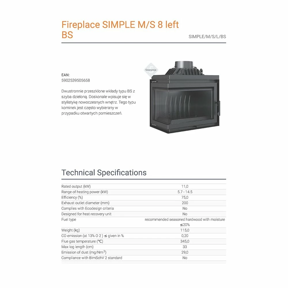 Ενεργειακό τζάκι μαντεμένιο αριστερή γωνία KRATKI SIMPLE/M/S/L/BS 11KW / 110-145m2