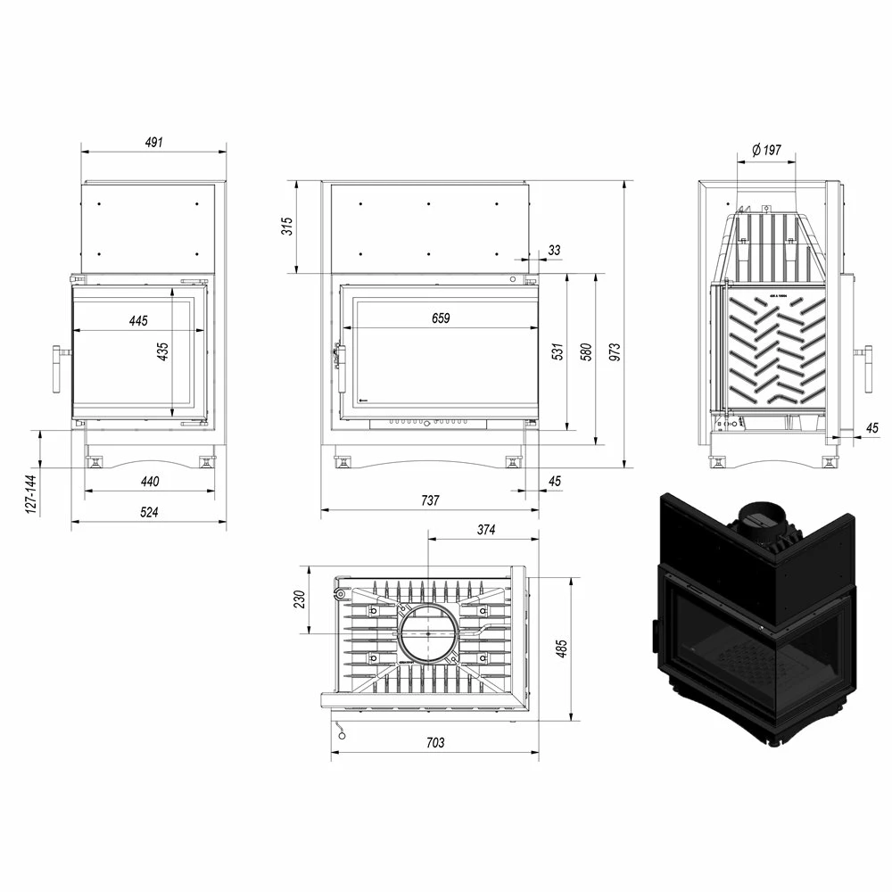 Ενεργειακό τζάκι μαντεμένιο KRATKI ZUZIA/P/BS/DECO ΔΕΞΙΑ ΓΩΝΙΑ 16KW / 140-160m2
