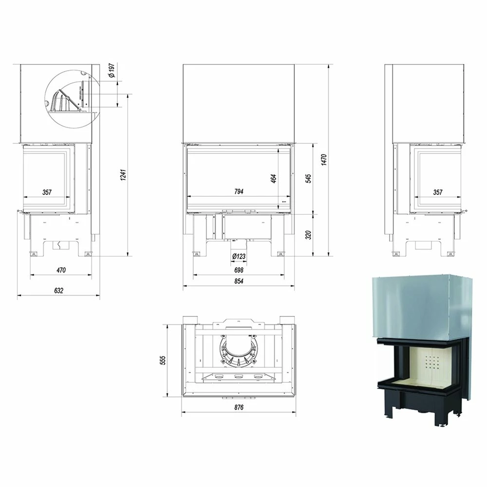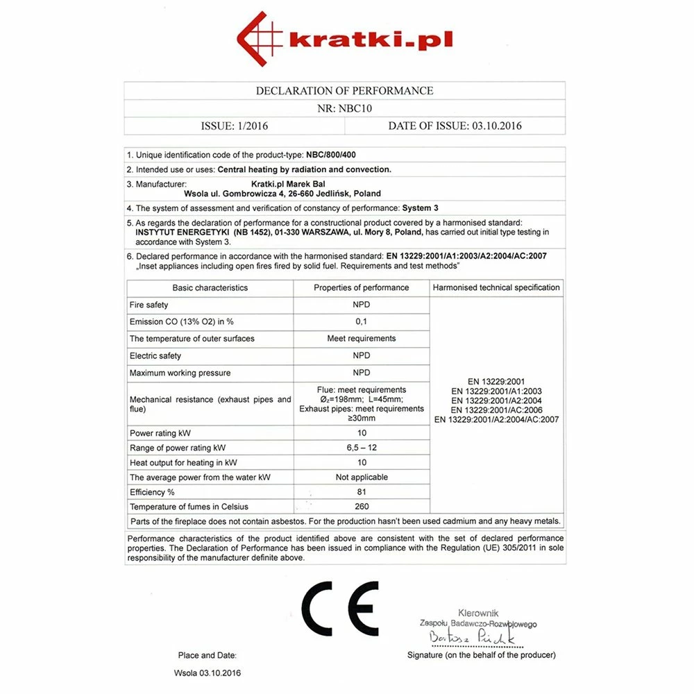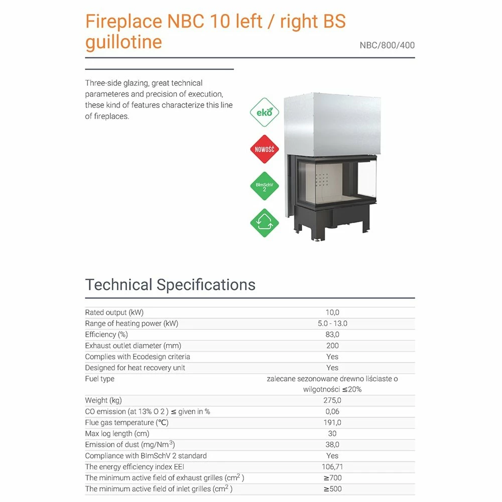 Ενεργειακό τζάκι συρόμενη πόρτα 3 όψεων KRATKI NBC/800/400 10KW (70-125M2)