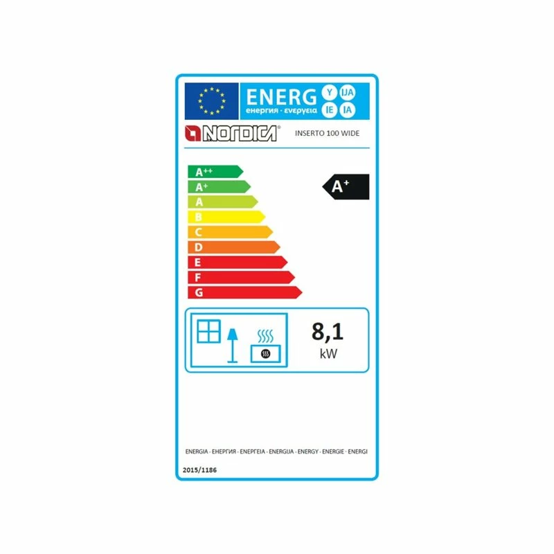 Ολοκαίνουρια ενεργειακή αερόθερμη κασέτα τζακιού με πλάτος ένα μέτρο, επίπεδη μαντεμένια πόρτα, καλυμμένη εξολοκλήρου με πυρίμαχο κεραμικό κρύσταλλο 750°C. Με επανασχεδιασμένη, μεγαλύτερη εστία καύσης και πιο μεγάλο άνοιγμα στο τζάμι για πιο απολαυστική θέα της φλόγας. Η εστία εσωτερικά έχει επένδυση με μαντέμι και Nordiker, ένα πατενταρισμένο κεραμικό υλικό της La NORDICA, που λειτουργεί σαν αποθήκη θερμότητας, αποδίδοντας ζεστασιά στον χώρο μας για αρκετό χρόνο αφότου σβύσει η φωτιά. Το Nordiker έχει λευκό χρώμα και παραμένει λευκό, λόγω της ιδιότητας της πυρόλυσης, εφόσον το καύσιμο και η εγκατάσταση πληρούν τις προδιαγραφές. Η ωφέλιμη θερμική ισχύς (αυτή δηλαδή που τελικά “μένει” στον χώρο μας για να μας ζεστάνει), είναι 8,1kW που θερμαίνουν έναν επαρκώς μονωμένο χώρο 232m3. Η ισχύς της ελέγχεται μέσω του ρυθμιστή πρωτογενούς και δευτερογενούς αέρα καύσης. Ο τριτογενής αέρας είναι προ-ρυθμισμένος.