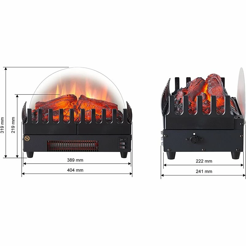 - Διαθέτει πιστή απομίμηση ξύλων πάνω σε σχάρα (στο εσωτερικό των ξύλων υπάρχουν LED φώτα που τρεμοπαίζουν και δίνουν μια αληθινή αίσθηση από ξύλο που καίγεται).